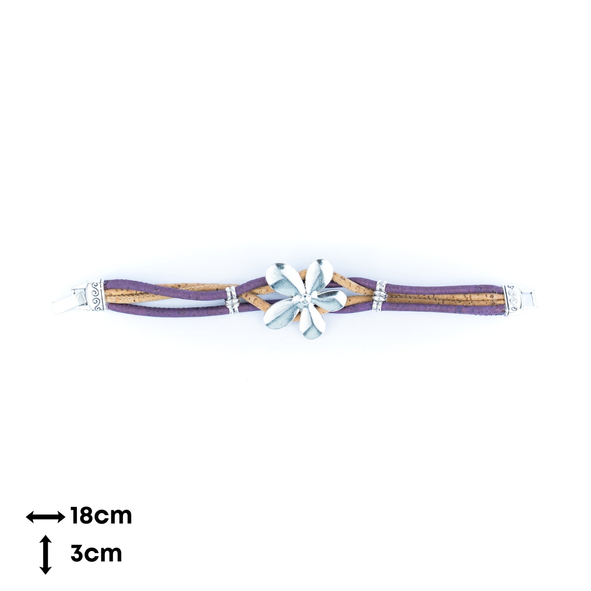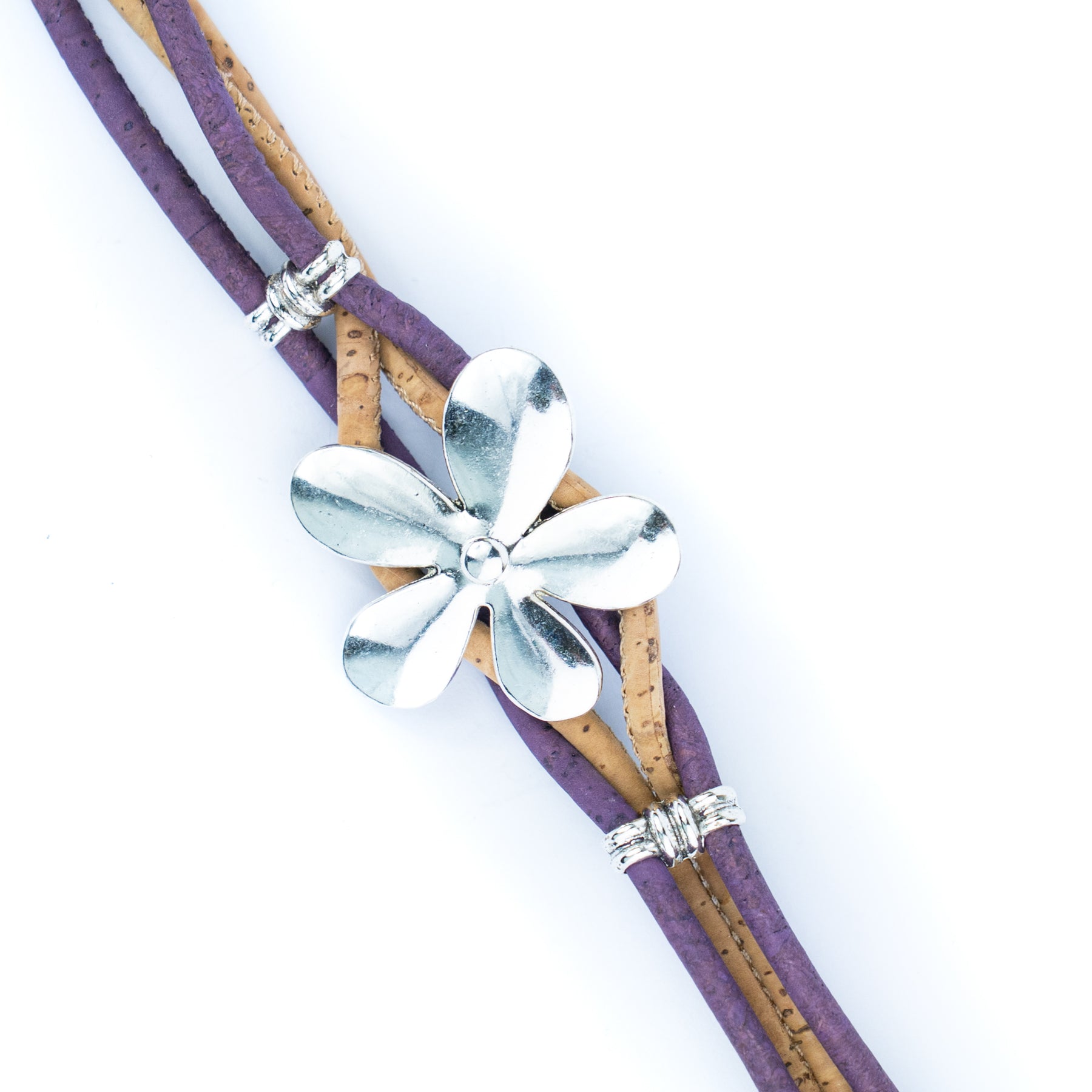 Natural cork cord Handmade Cork Bracelet with Alloy Flowers BR-423-MIX-5