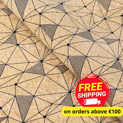Natural Cork Fabric with Black Geometric Pattern COF-665