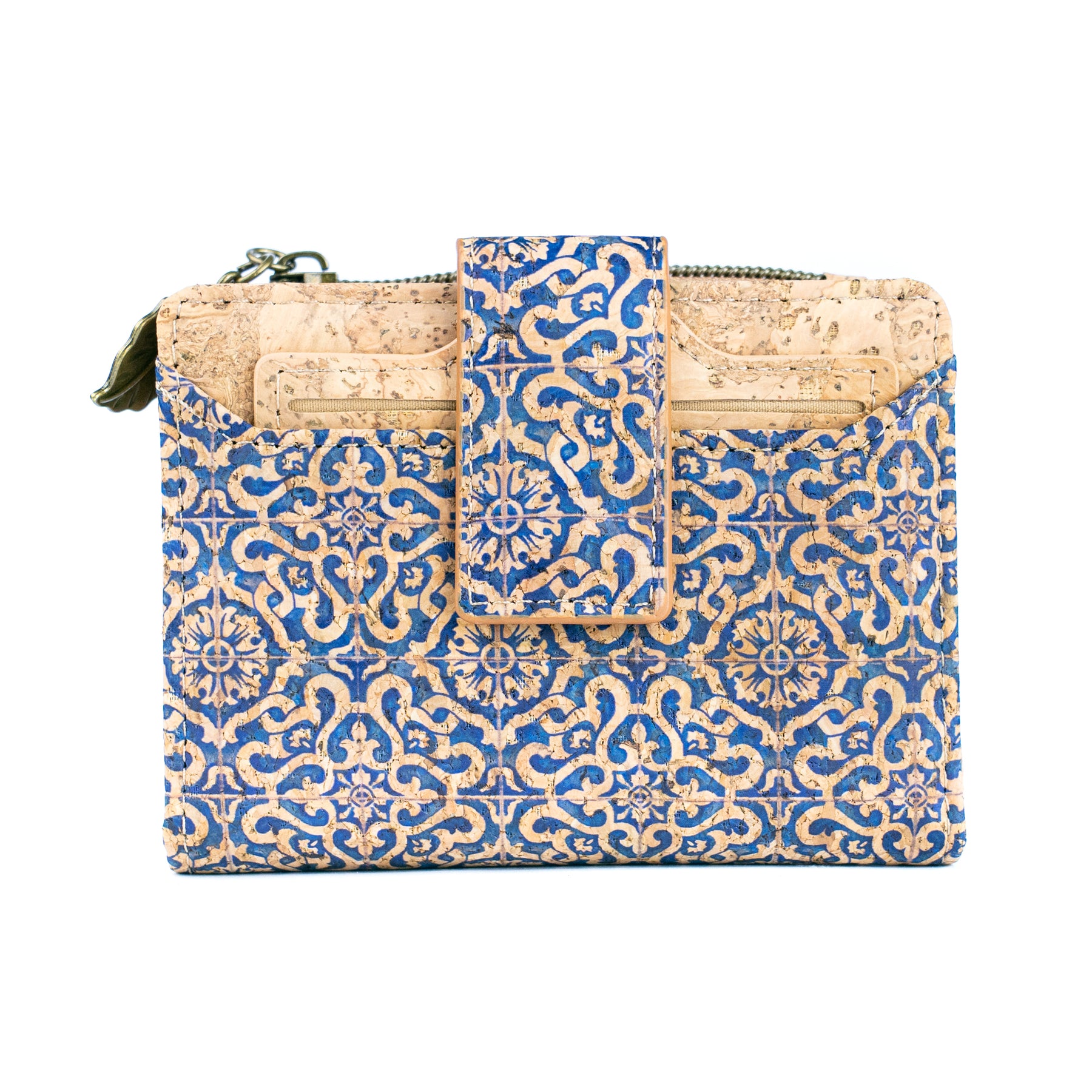 Add a touch of Portuguese craftsmanship to your everyday essentials with this elegant cork zipper wallet. Handmade from genuine, sustainable cork fabric, it features a delicate blue floral pattern over a natural cork base — lightweight, soft to the touch, and completely vegan.
