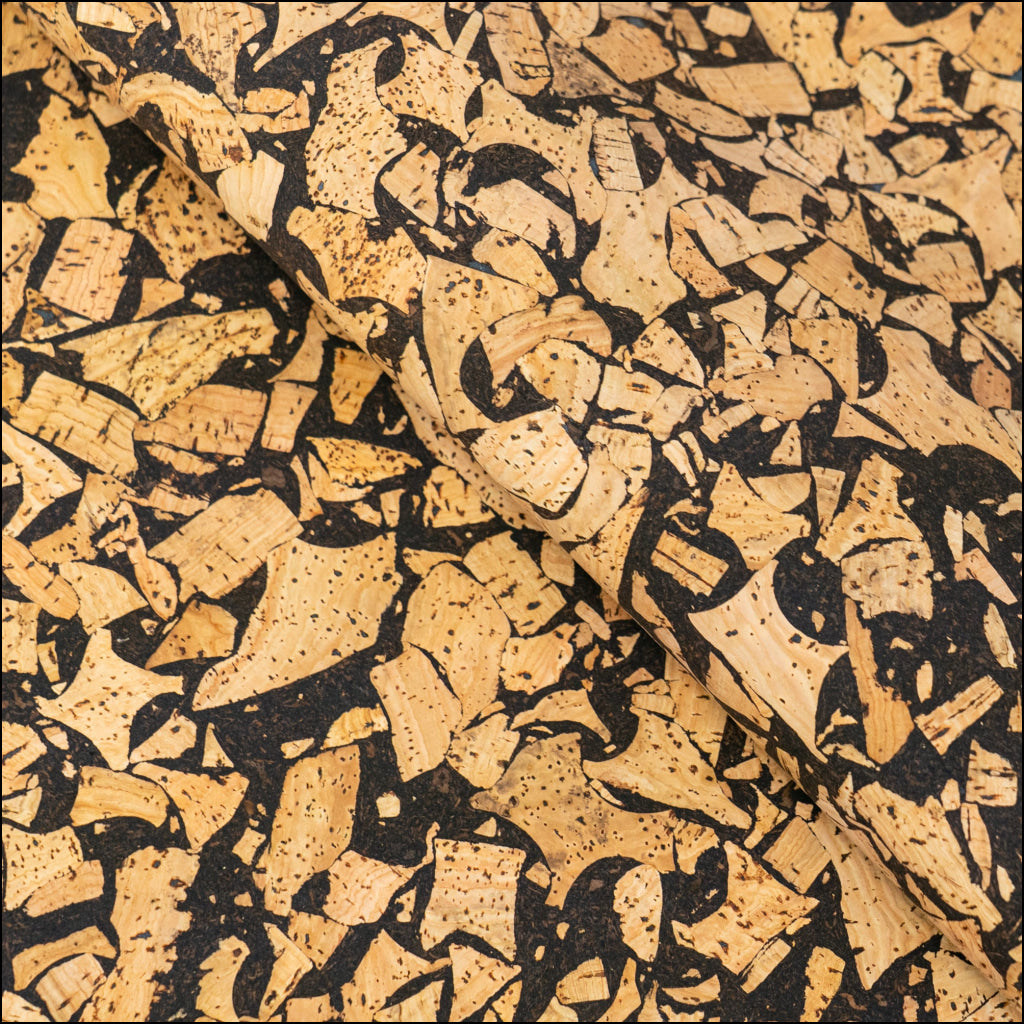 Cork fabric features a fabric support backing composed of polyester, cotton, and polyurethane, providing it with a luxurious and leather-like feel. Its soft, smooth, and pliable texture makes it a favored choice for various applications, including handcrafted bags, wallets, clothing embellishments, craft projects, applique, embroidery, shoes, and upholstery.