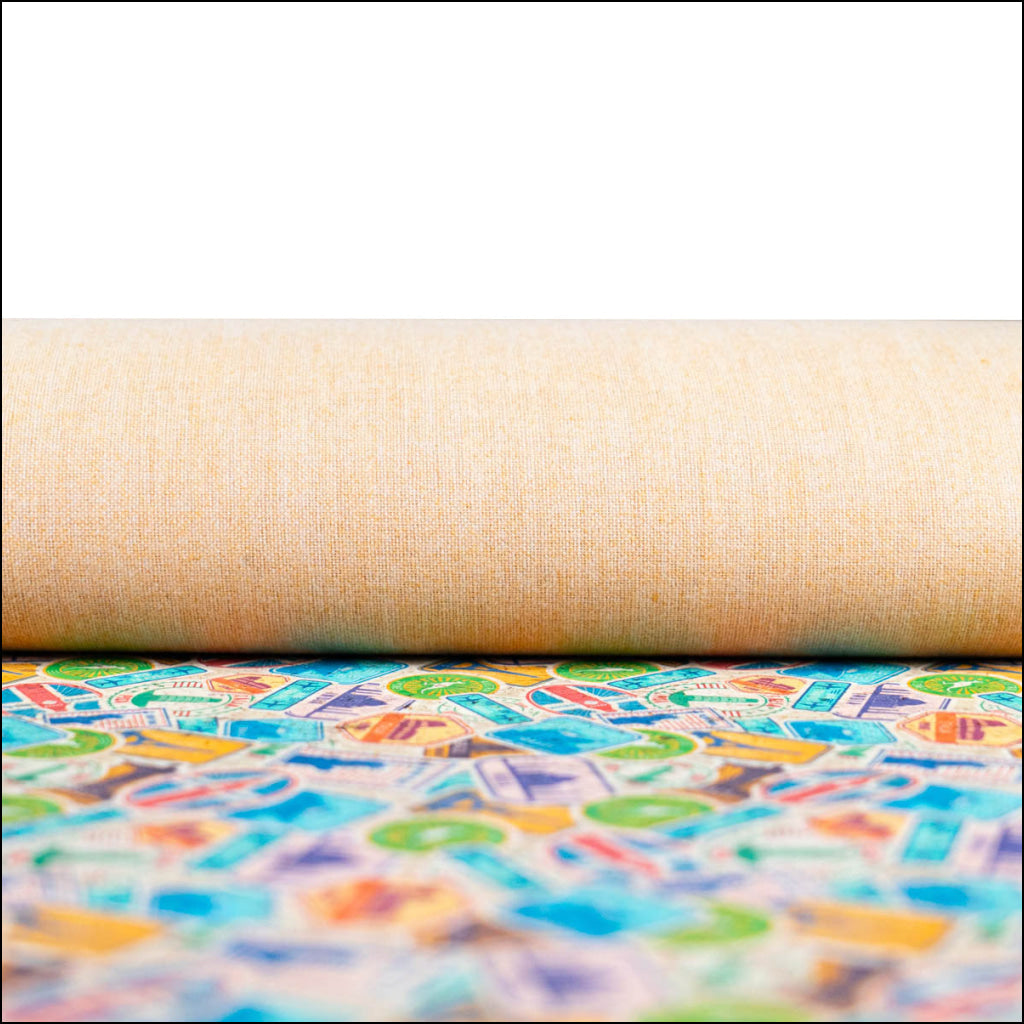 World Famous Landmarks Stamp And Passport Seal Pattern On Cork Fabric Cof-502 Cork Fabric