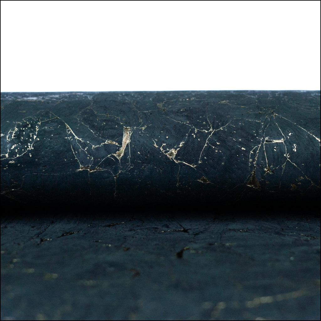Black with Gold Cork Fabric 0.87mm Thickness Backed with Black COF-545 cork fabric