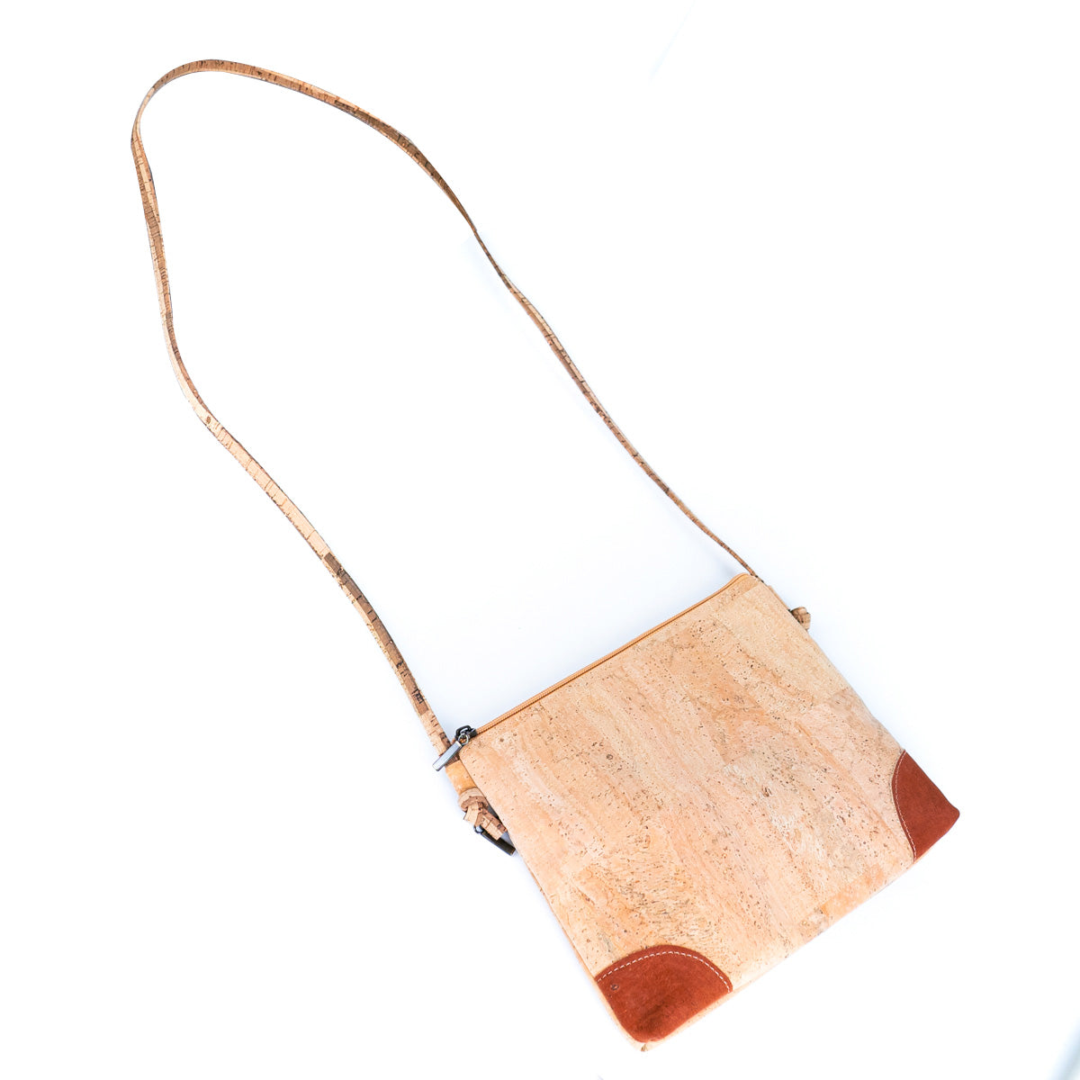 Natural Cork Women's Crossbody Bag, a stylish blend of eco-conscious design and vivid color accents. Crafted from the finest cork, this bag is not only sustainable but also water-resistant and incredibly soft to the touch. The main body boasts a light, versatile coffee hue, complemented by vibrant red and subtle blue trimmings for a look that's both playful and polished.