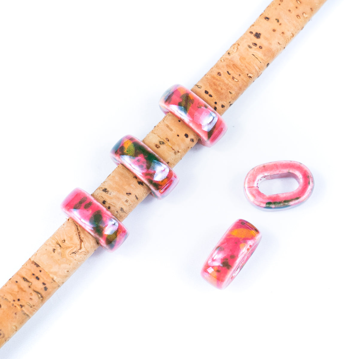 DETAILS Beautiful and colorful ceramic sliders will add extra detail to your project. Whether you want to make a bracelet, necklace or any other piece, these will help you realize your design. Take a look at some of our cork ropes and get some inspiration for your next DIY project. It is made of high quality ceramic. Contents - Material: Ceramic Size - About 11mm