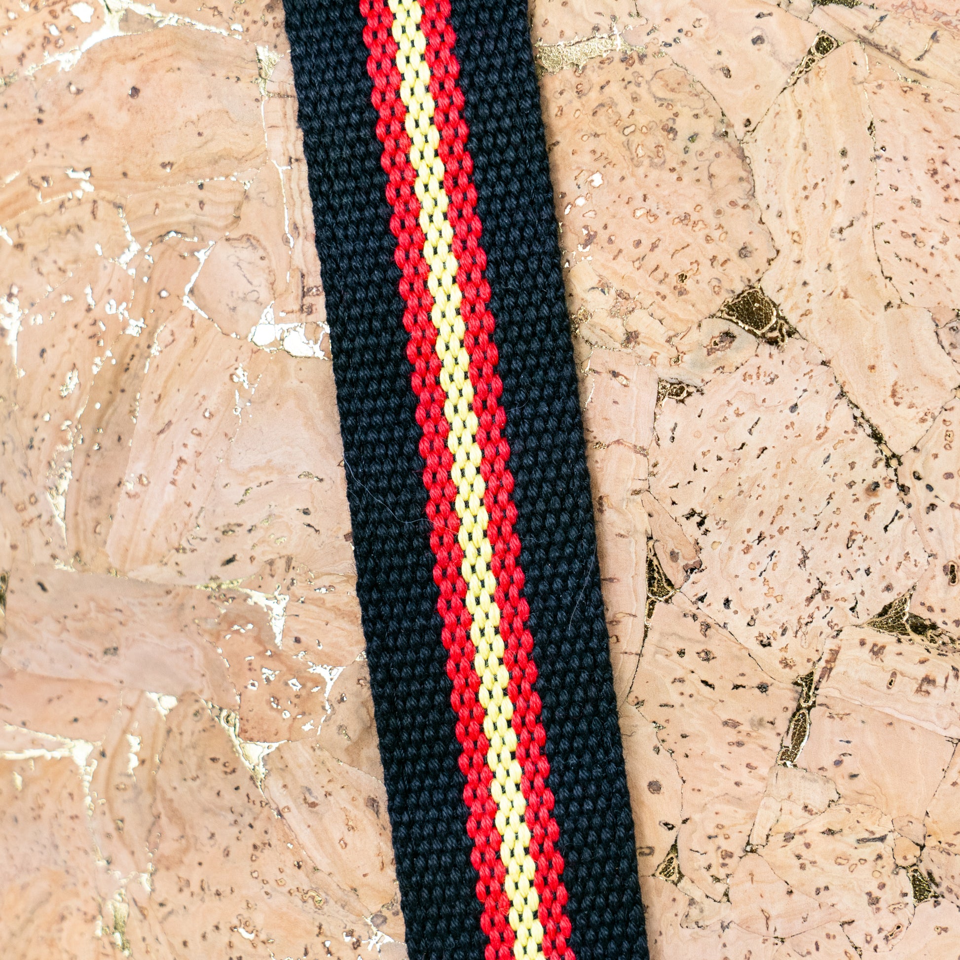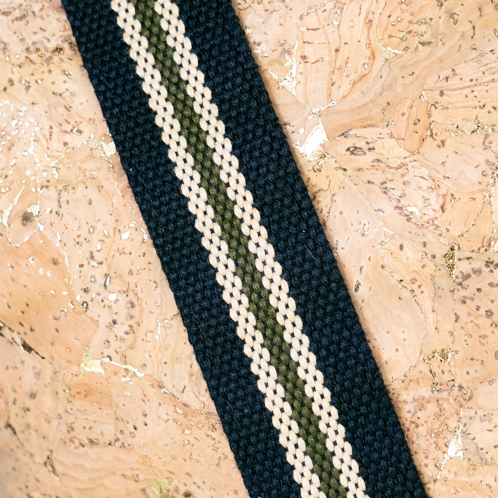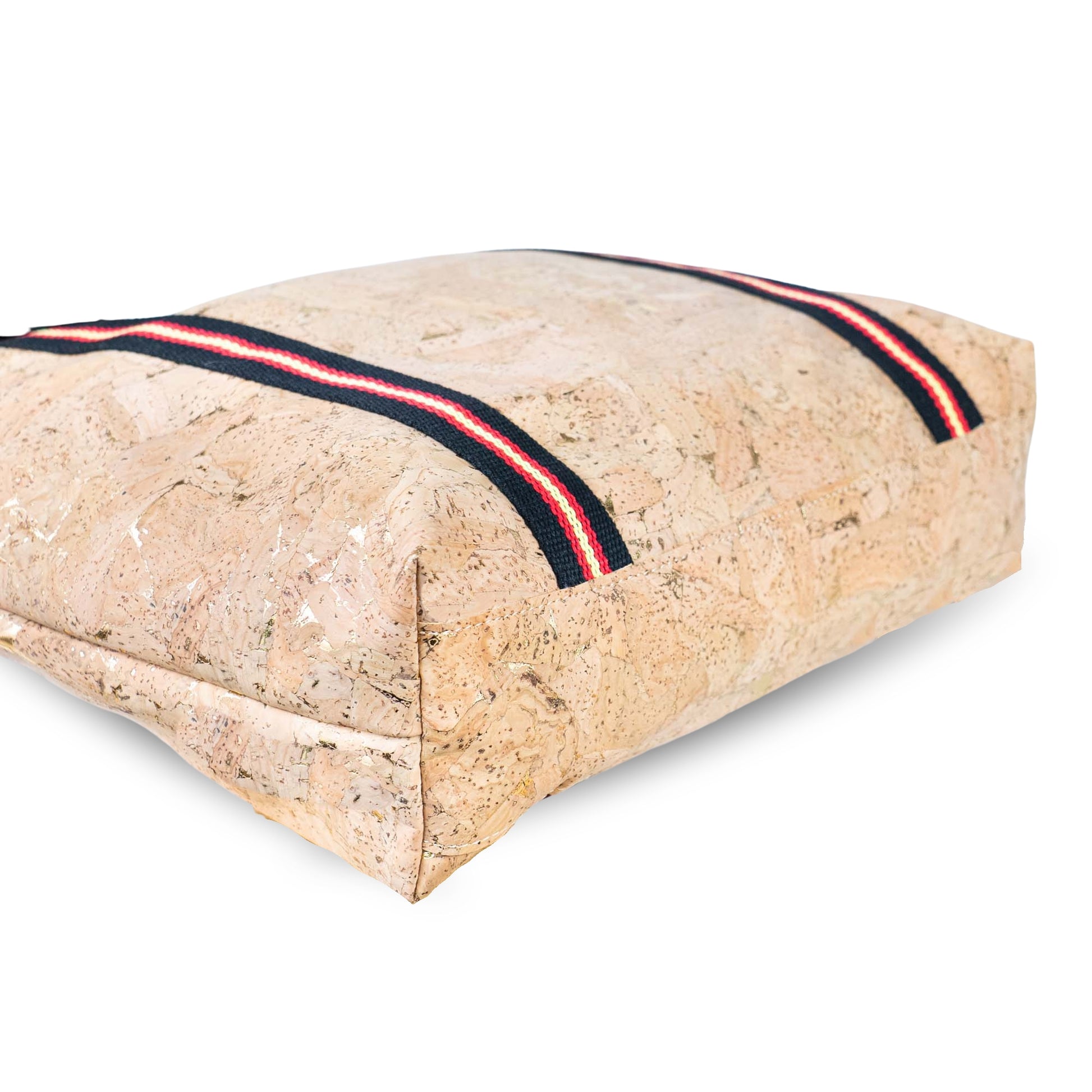 Cork tote bag with bold striped handles. Lightweight, durable, and perfect for daily use.
