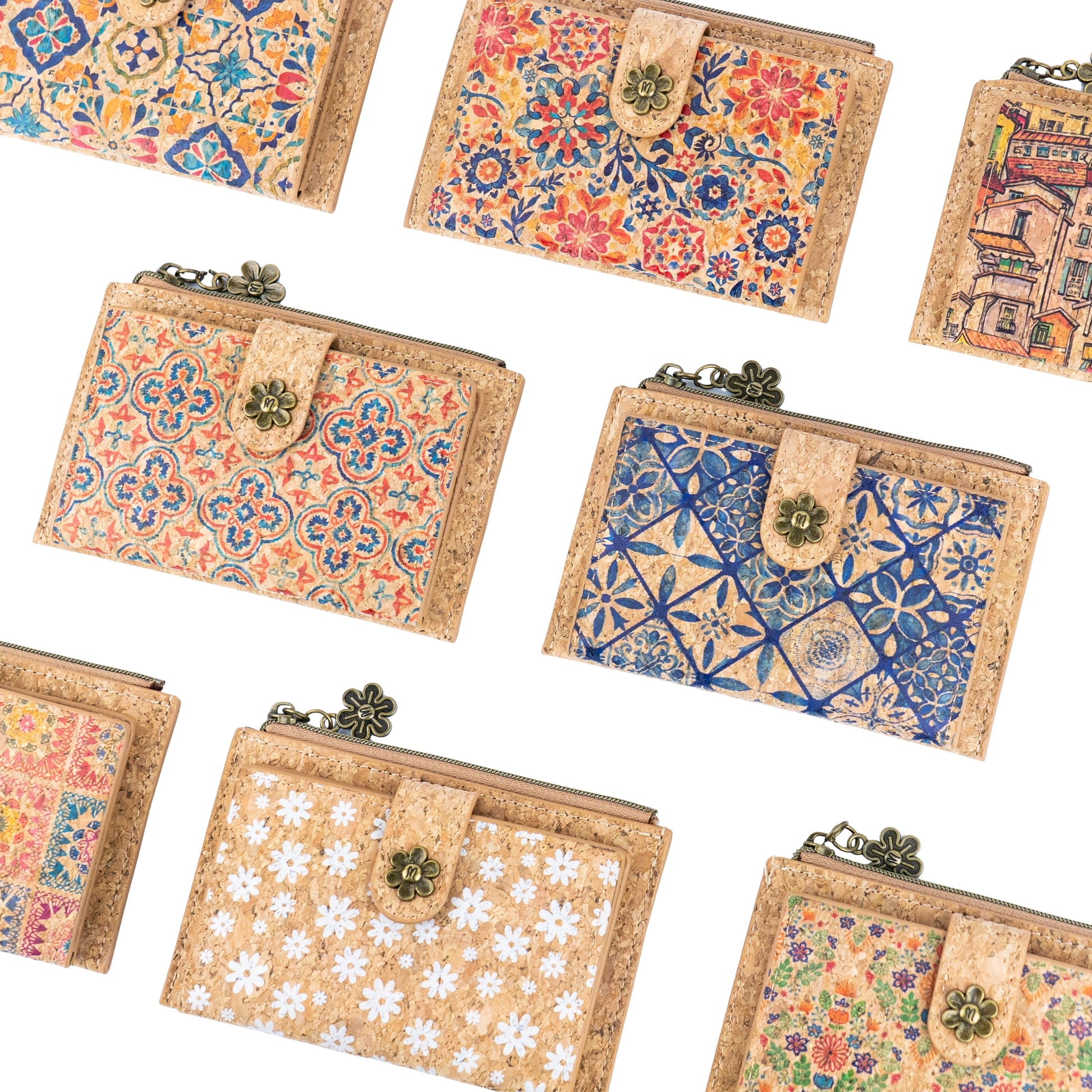 Colorful Floral Cork Wallet with Snap Closure and Coin Pocket BAGD-343A-MIX-8(8units)