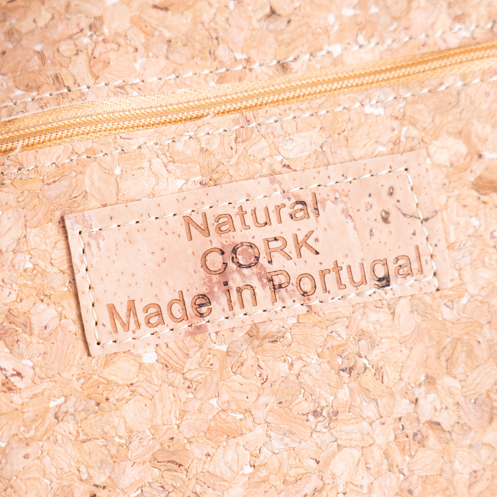 Interior: Spacious main compartment with multiple organizer pockets and a cork-trimmed zip pocket