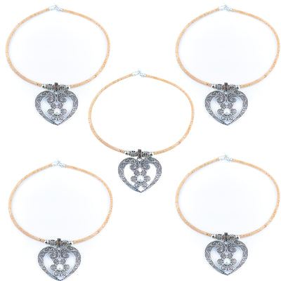 Natural cork cord and hollow heart pendant handmade women's fashion necklace N-013-5