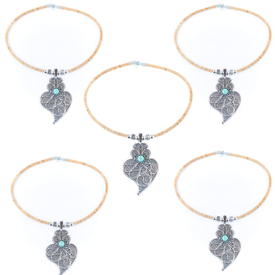 Natural cork cord and Heart of Viana pendant handmade women's fashion necklace N-018-5