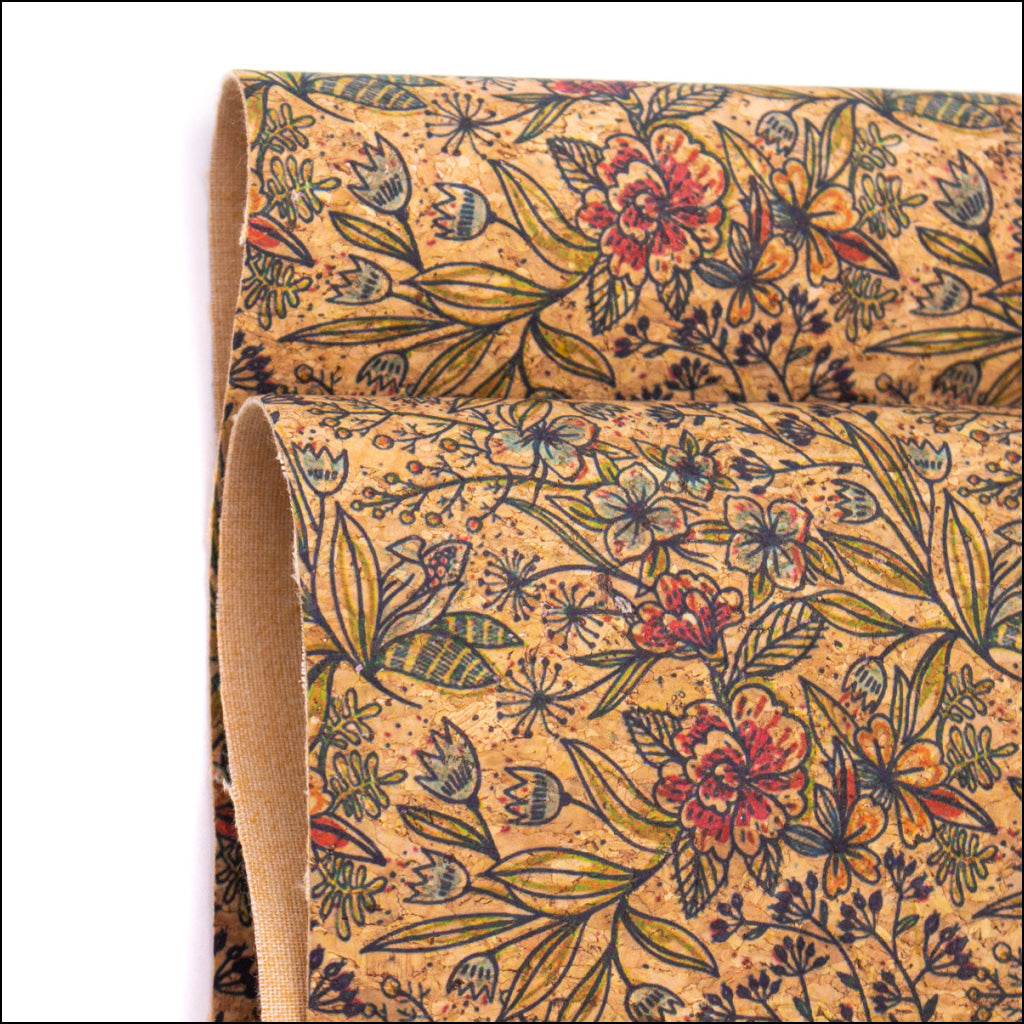Cork fabric features a fabric support backing composed of polyester, cotton, and polyurethane, providing it with a luxurious and leather-like feel. Its soft, smooth, and pliable texture makes it a favored choice for various applications, including handcrafted bags, wallets, clothing embellishments, craft projects, applique, embroidery, shoes, and upholstery.