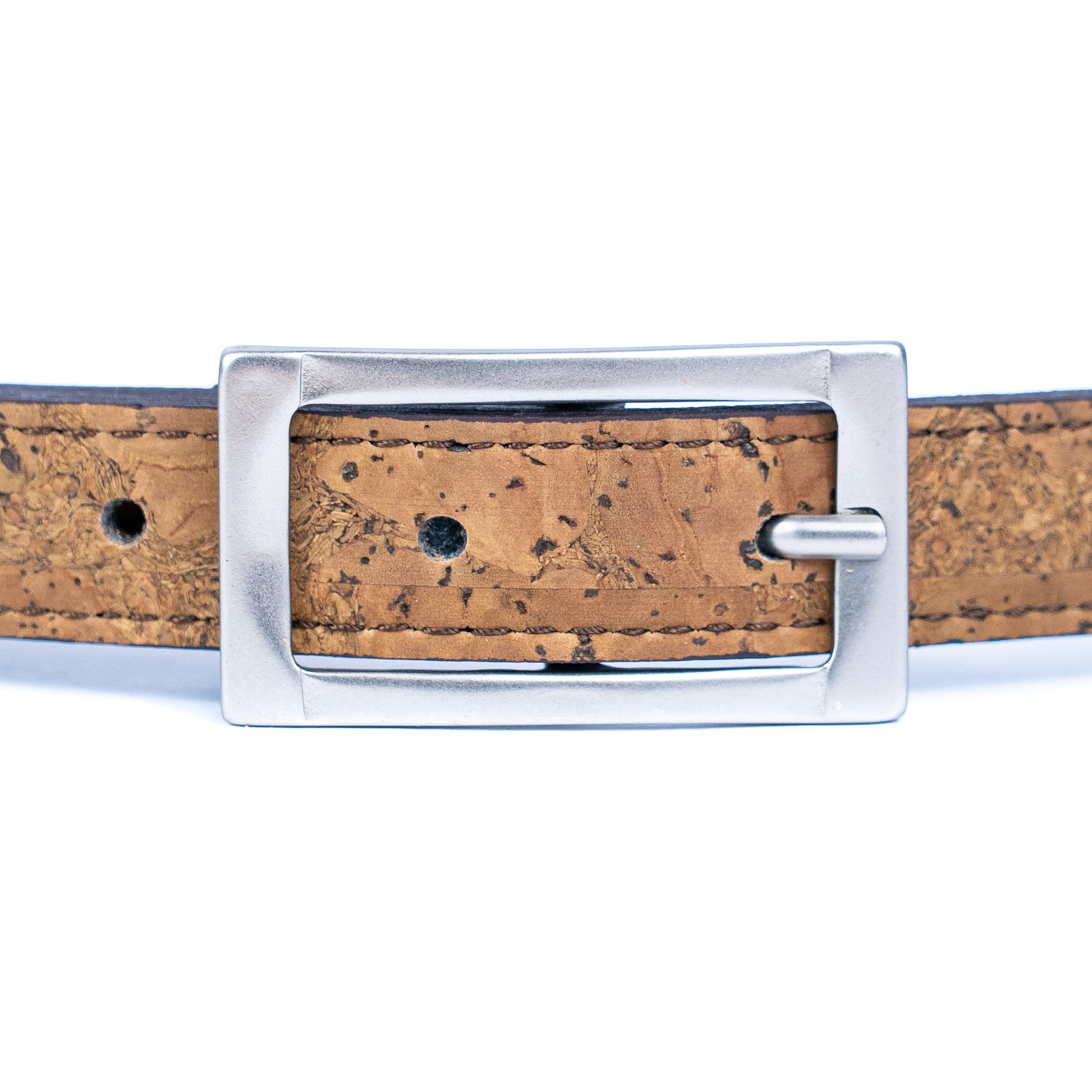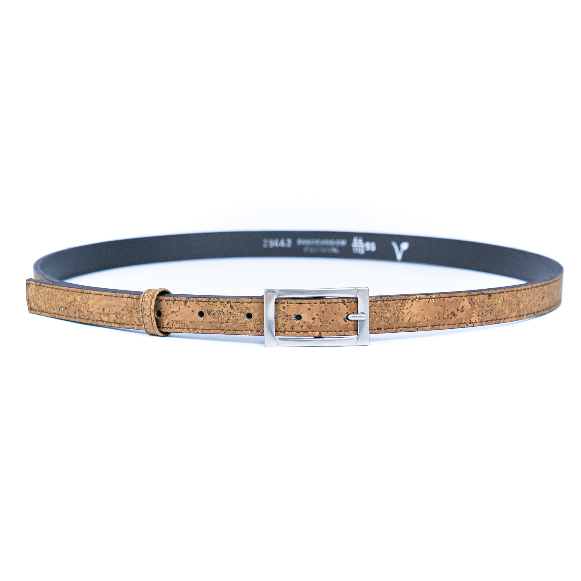 Women's Slim Cork Belt with Silver Rectangle Buckle – L-1106