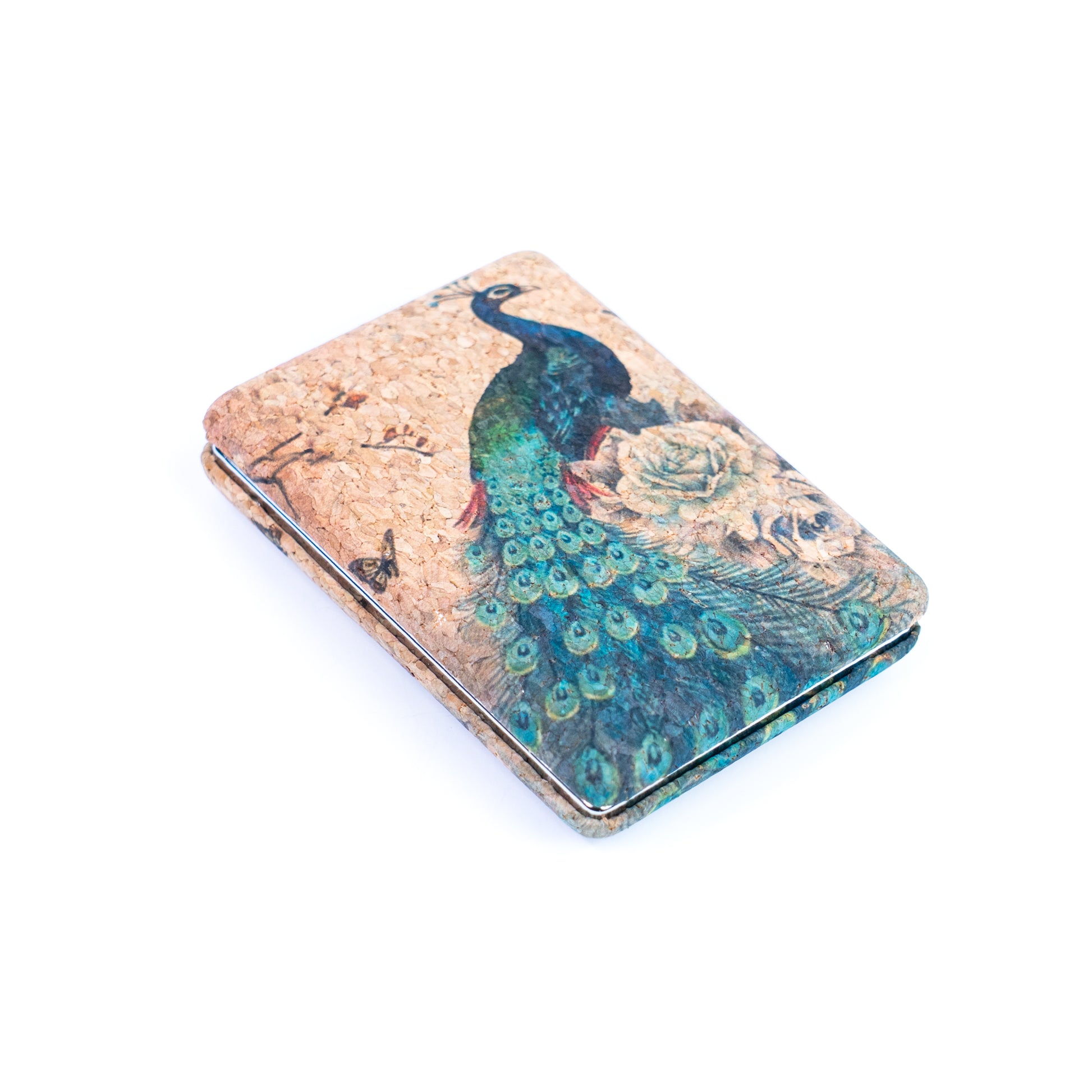 Eco-Friendly Cork Compact Mirror with Peacock Illustration L-1177-12