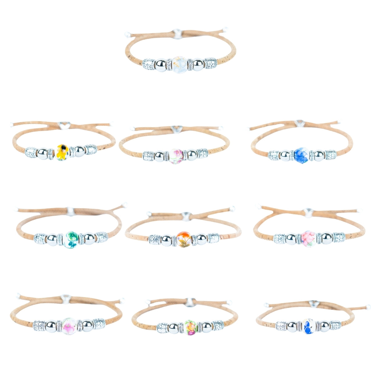 Handcrafted bracelet with natural cork thread and porcelain beads.BR-005-MIX-10