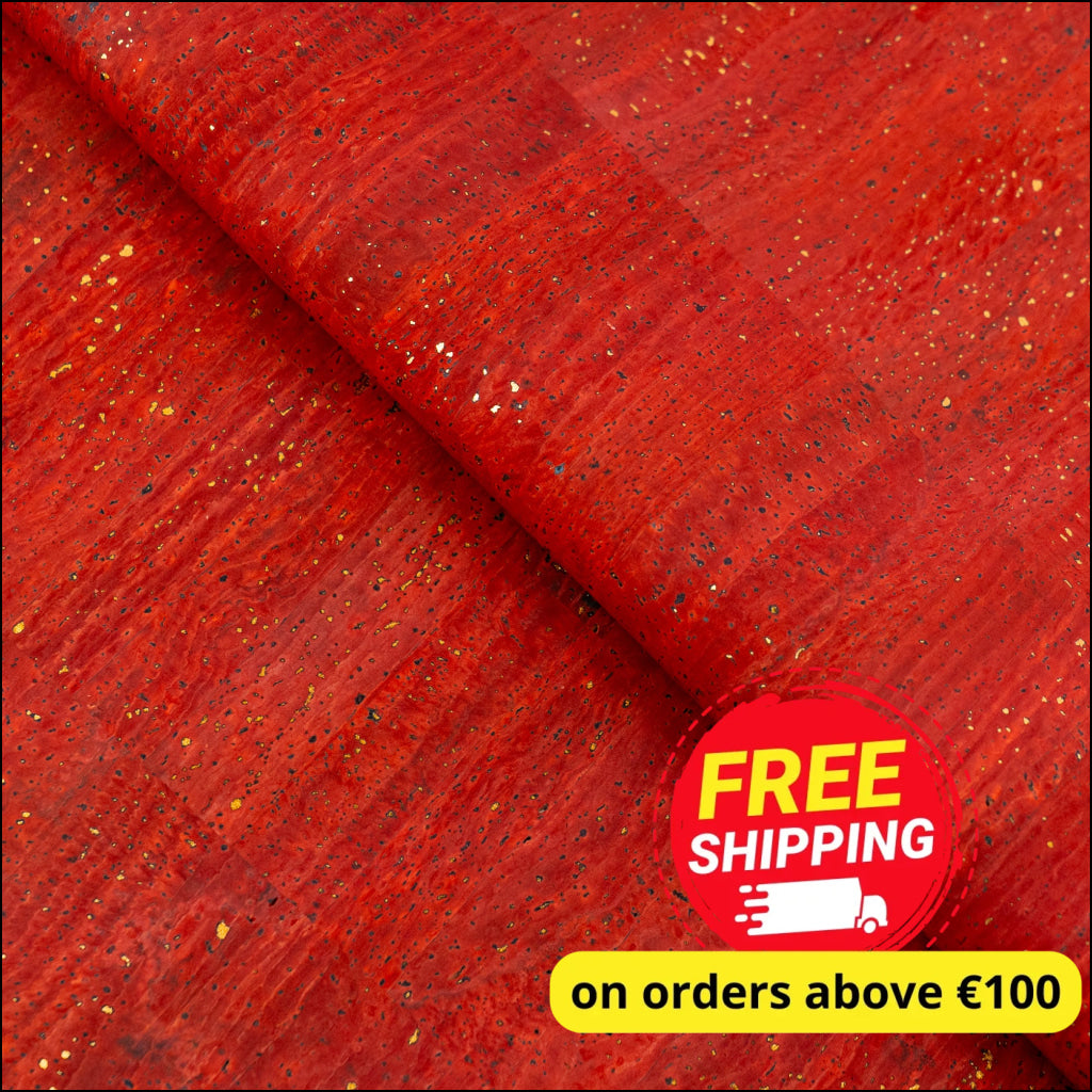 Vivid and vibrant, this bright red cork fabric features a bold splash of color with glimmering gold details throughout. With a thickness of 0.94mm, it strikes the perfect balance between structure and softness, making it suitable for sewing projects such as fashion accessories, clutches, and DIY crafts. Natural cork surface fused to a durable fabric backing—ethical, stylish, and easy to work with.