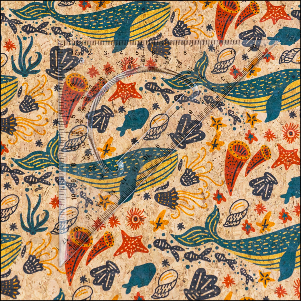 Illustrated Whale & Coral Cork Fabric COF-634 cork fabric