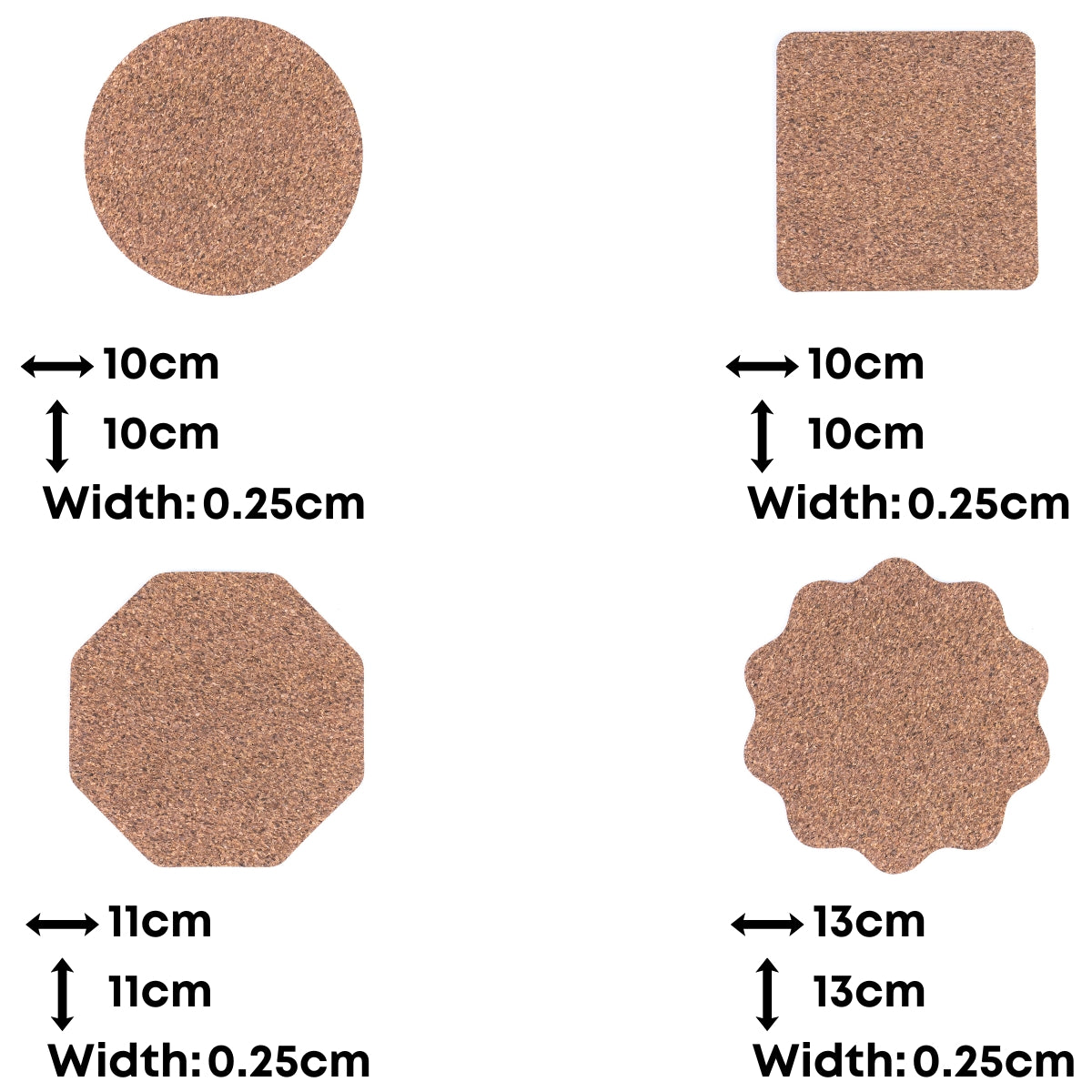 - Assorted shapes: Round 10 × 10 cm (3.94 × 3.94 in), Square 10 × 10 cm (3.94 × 3.94 in), Octagon 11 × 11 cm (4.33 × 4.33 in), Flower 13 × 13 cm (5.12 × 5.12 in)