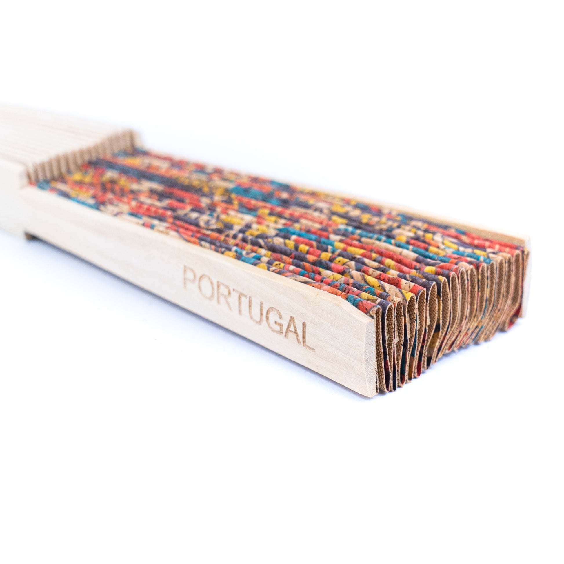 12units-Cork Antique Wooden Folding Hand Fan L-1108