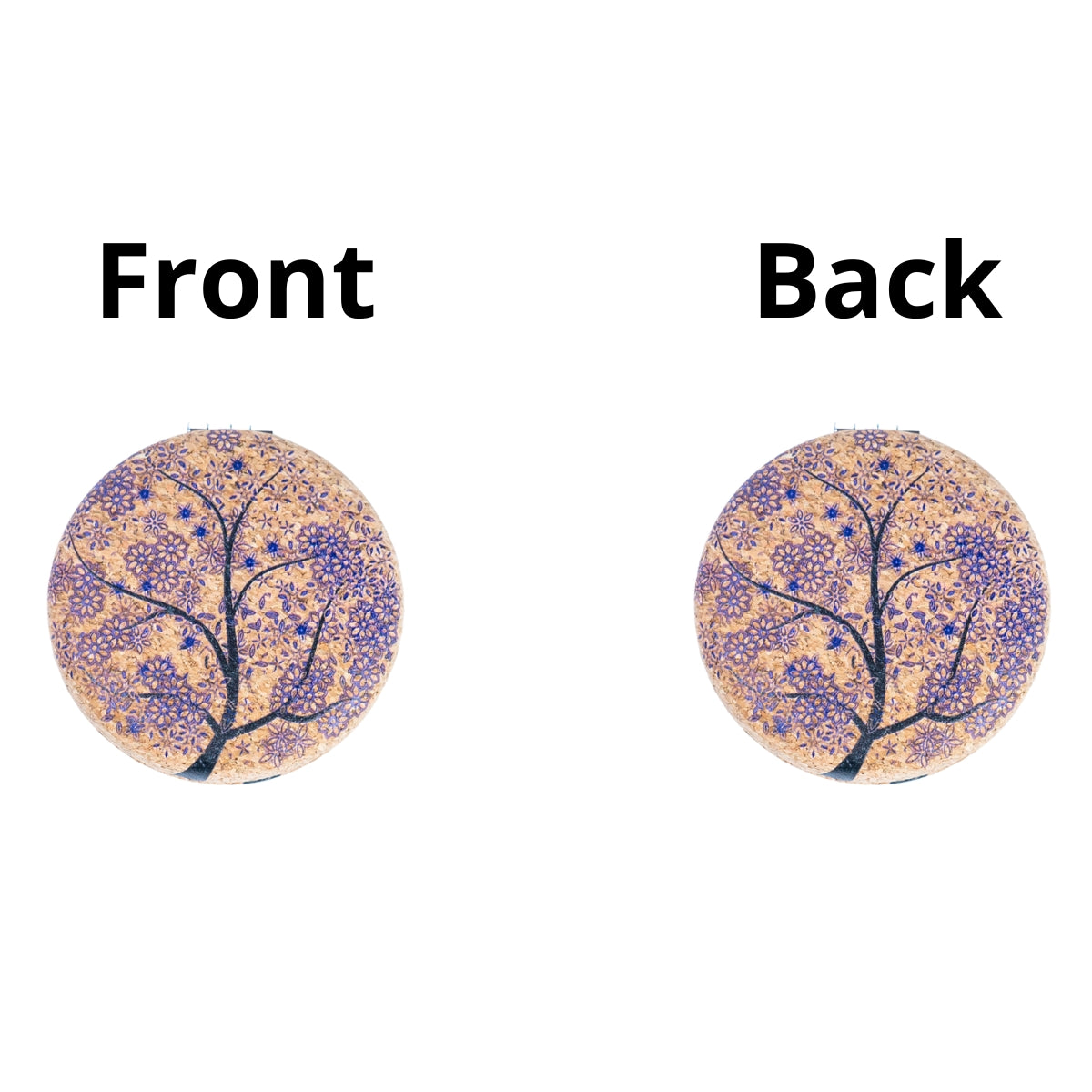 - Round cork compact mirror with Tree of Life design