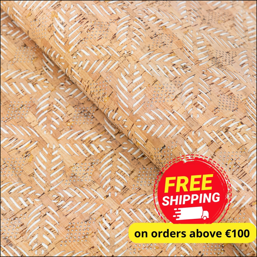Add a touch of modern elegance to your projects with this natural cork fabric featuring a white geometric cut-out pattern. The laser-engraved design reveals subtle white details beneath the cork surface, creating a stylish contrast that’s both organic and contemporary.
