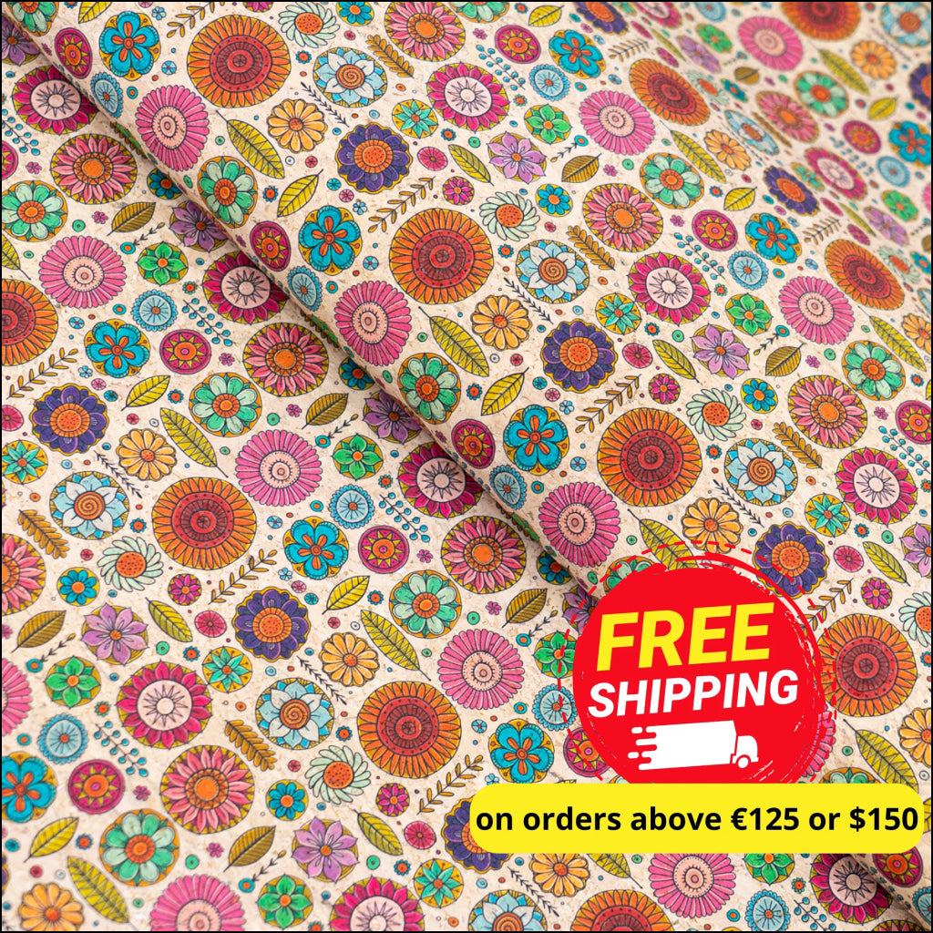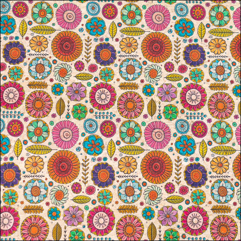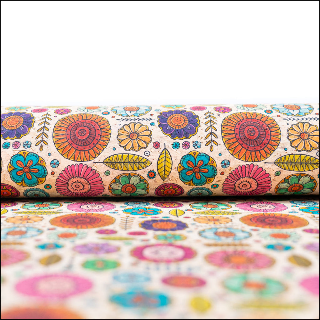 Vibrant Floral Pattern Cork Fabric Cof-551 Cork Fabric