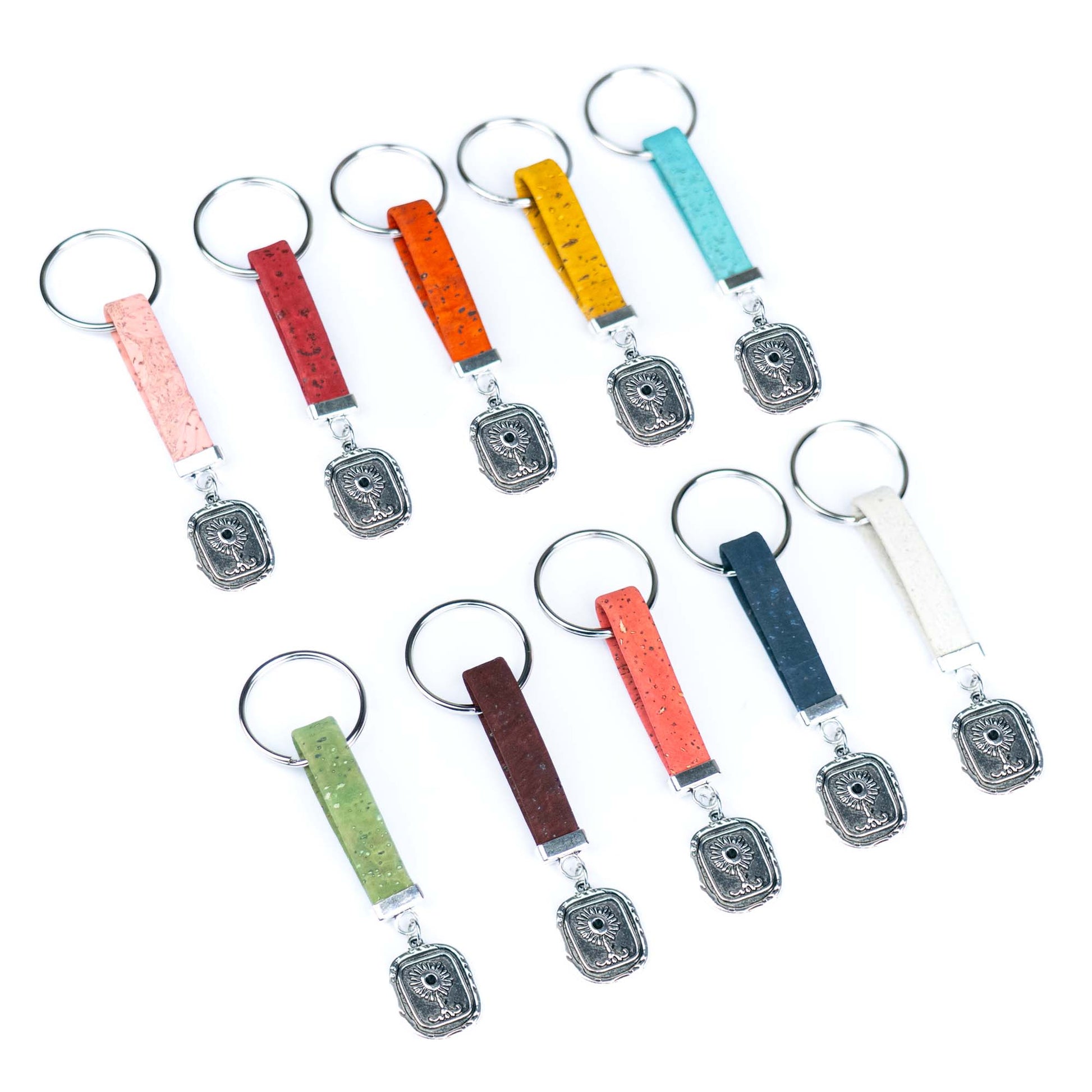 Handmade Cork Keychains – Sunflower Charm (Set of 10 Colors · Alloy Hardware)