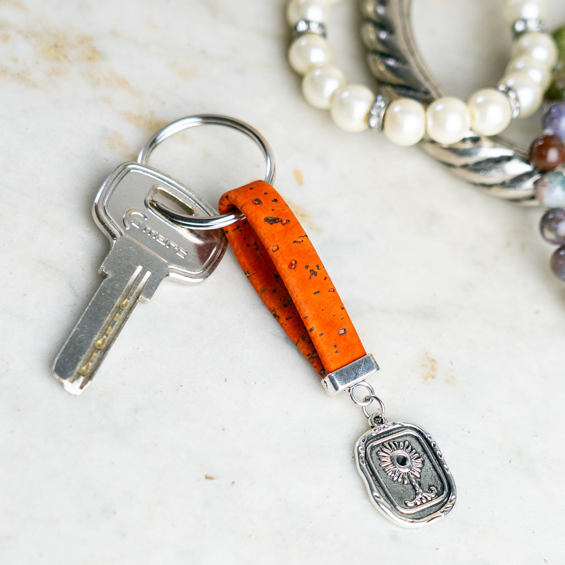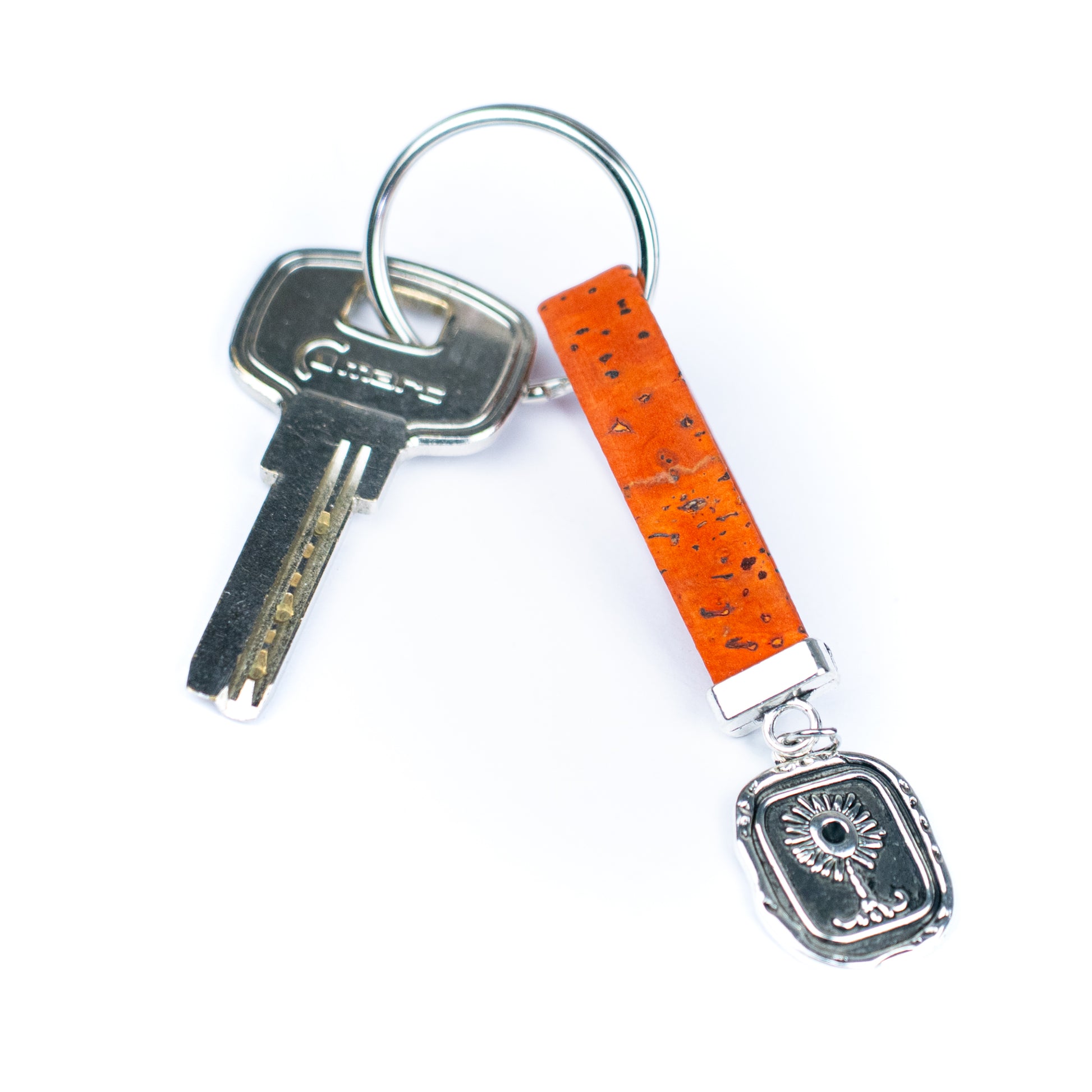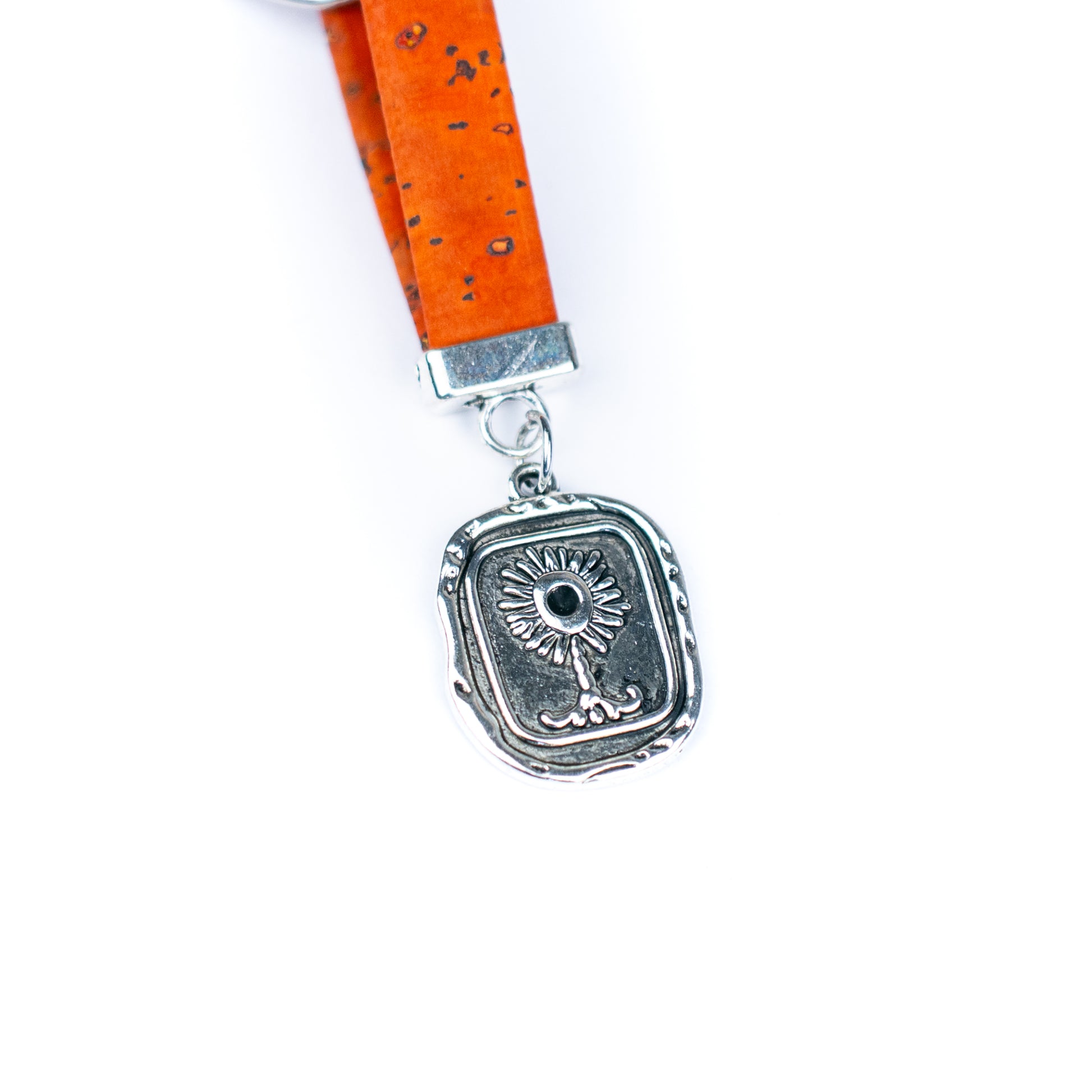 This handcrafted keychain set features 10 individually colored pieces, each made from natural Portuguese cork and adorned with a beautifully detailed sunflower charm – a symbol of positivity, warmth, and hope. The hardware is made of durable alloy, combining sustainability with artisanal elegance.