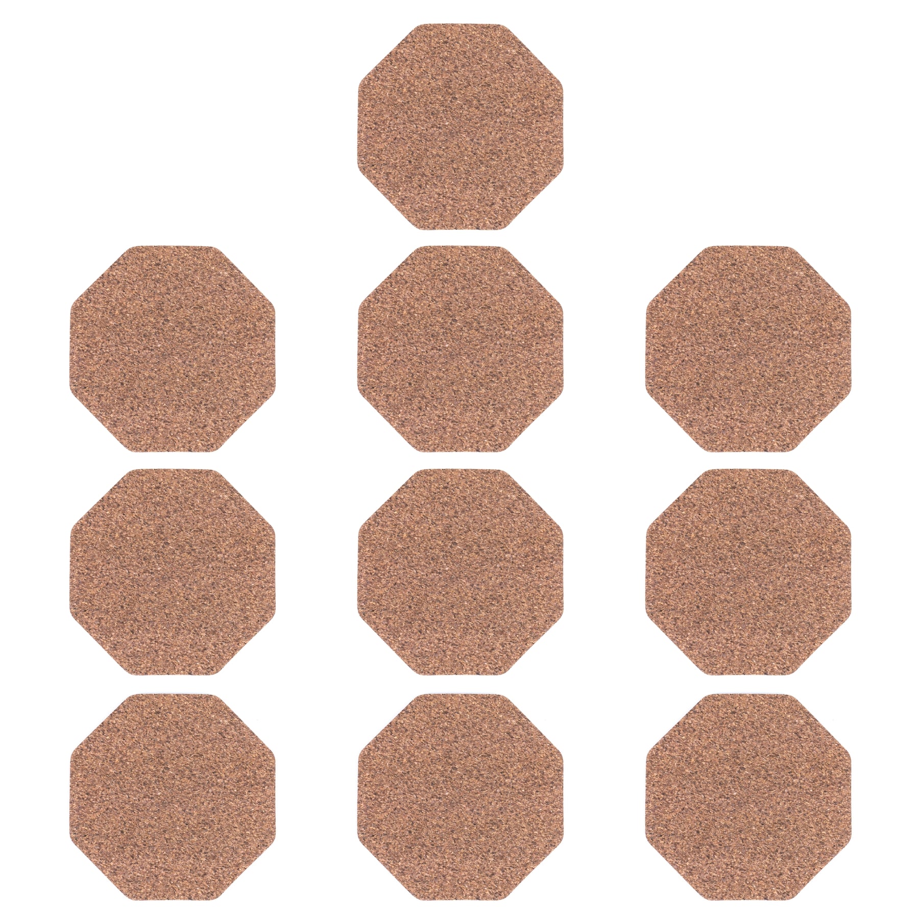 This set of 10 cork coasters is made from natural cork blended with recycled coffee grounds, giving each piece a rich dark-brown tone and a distinctive speckled texture. The coffee grounds are responsible for the darker color, making every coaster unique while adding an eco-conscious touch.