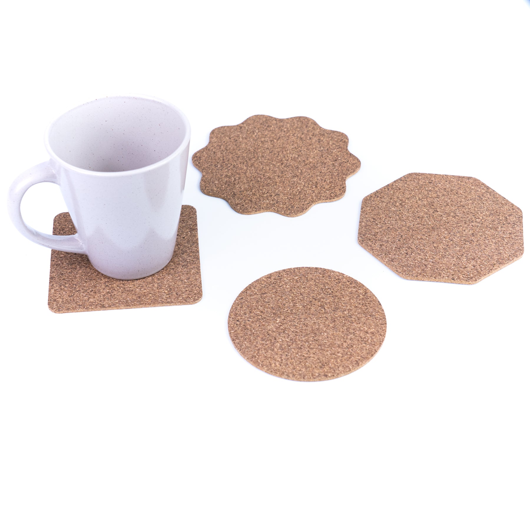 Naturally heat-resistant and moisture-absorbing, these cork coasters help protect tables, desks, and countertops from heat marks, water rings, and scratches. With a mix of classic and decorative shapes, they are ideal for daily use with coffee mugs, tea cups, glasses, and cold drinks—perfect for home, office, cafés, or sustainable gifting.