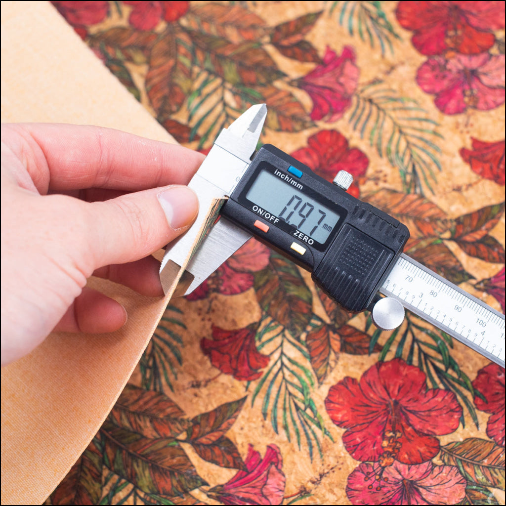 Cork fabric features a fabric support backing composed of polyester, cotton, and polyurethane, providing it with a luxurious and leather-like feel. Its soft, smooth, and pliable texture makes it a favored choice for various applications, including handcrafted bags, wallets, clothing embellishments, craft projects, applique, embroidery, shoes, and upholstery.