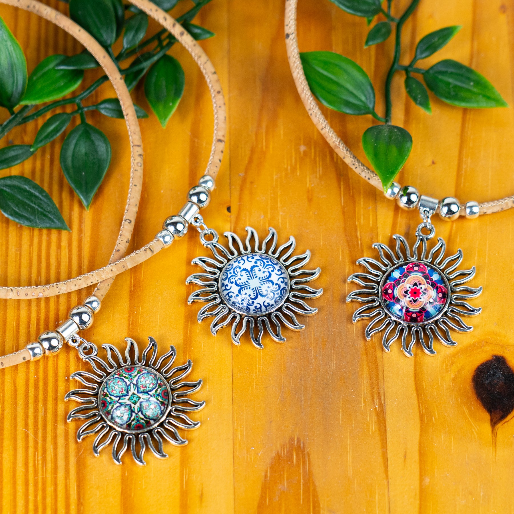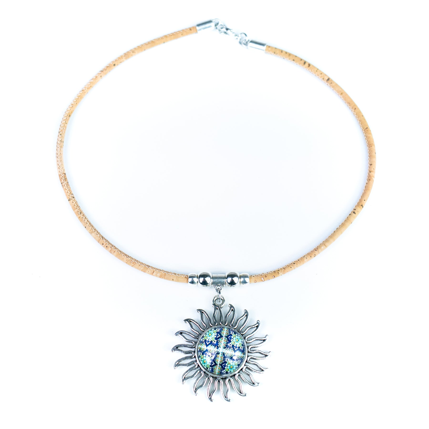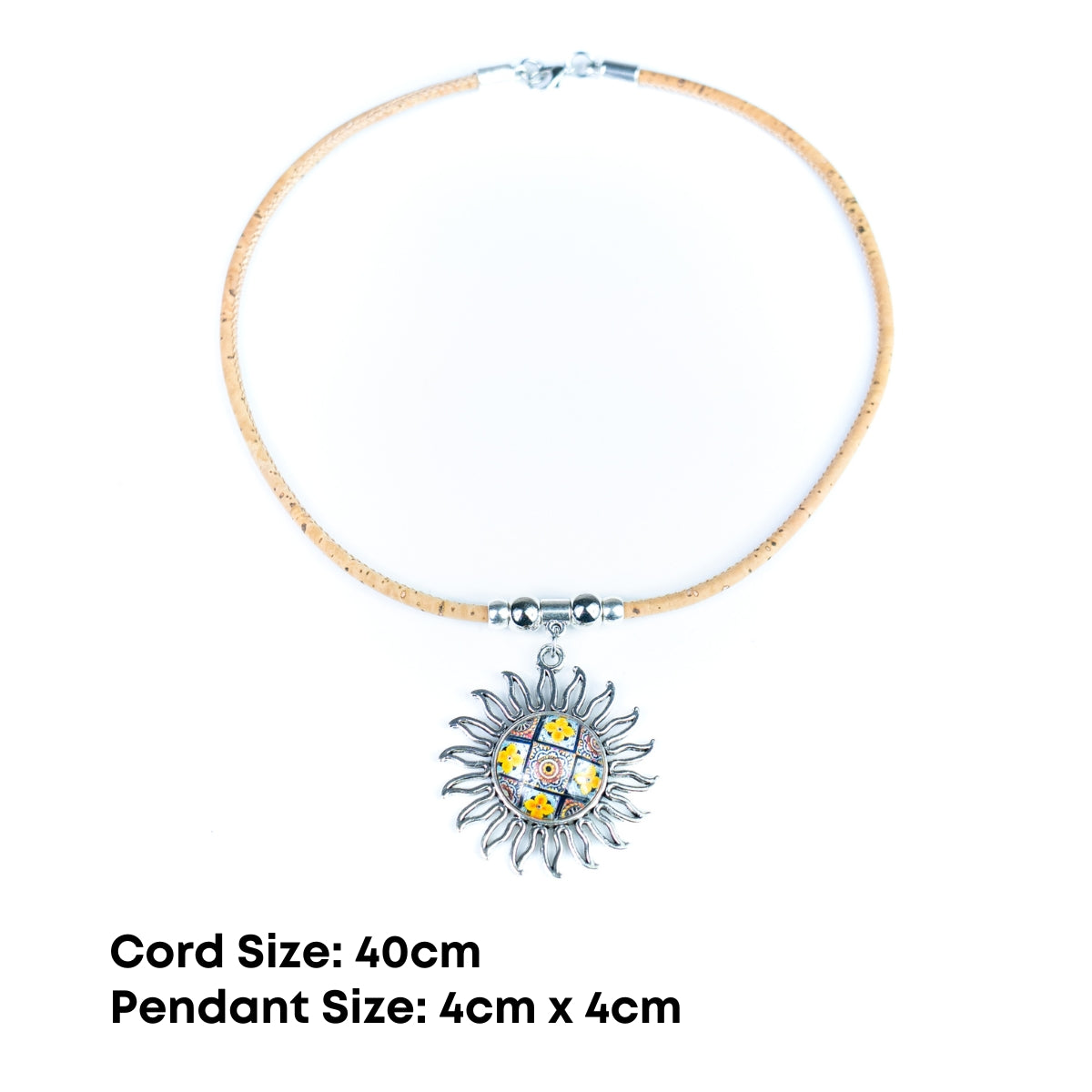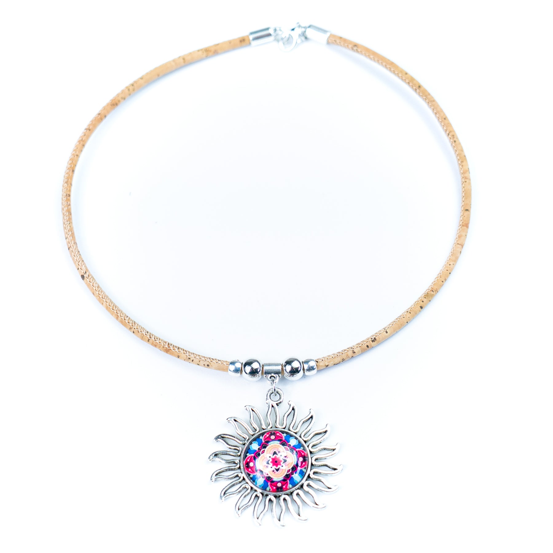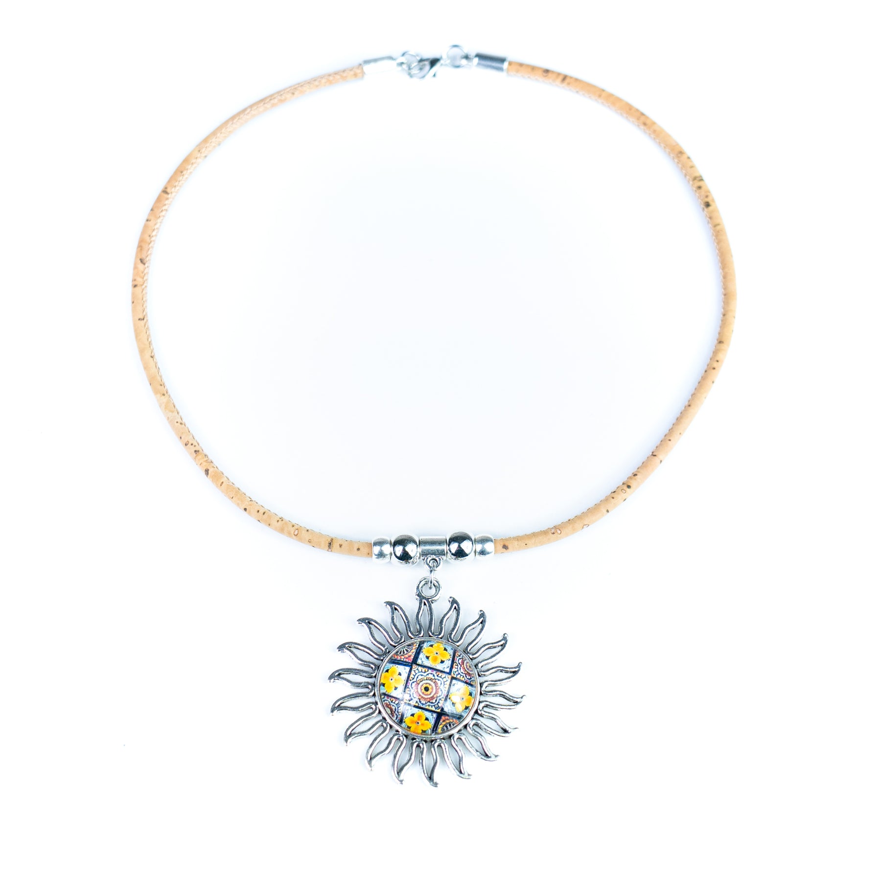 Handmade Portuguese Cork Necklace with Sun Pendant | Mixed Colors NE-1030-MIX-5-RANDOM