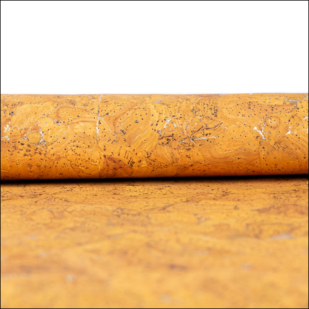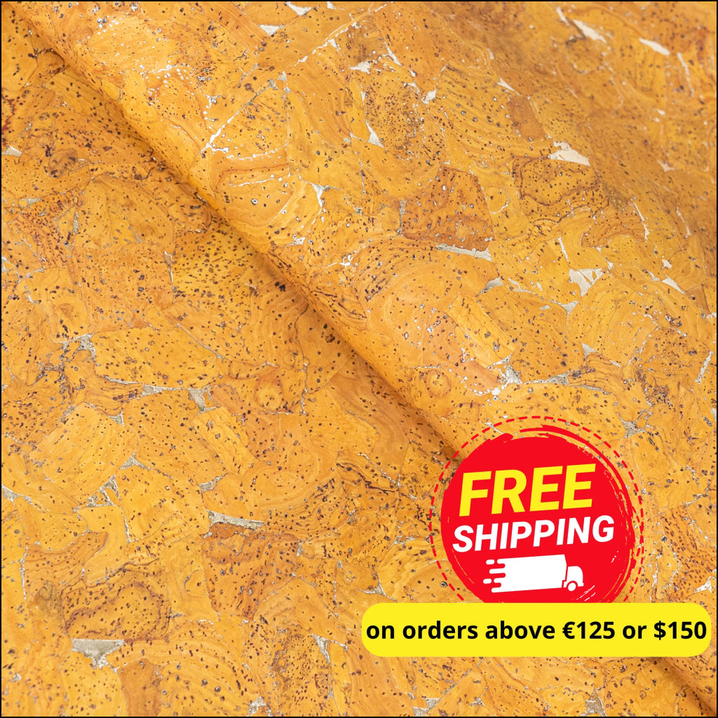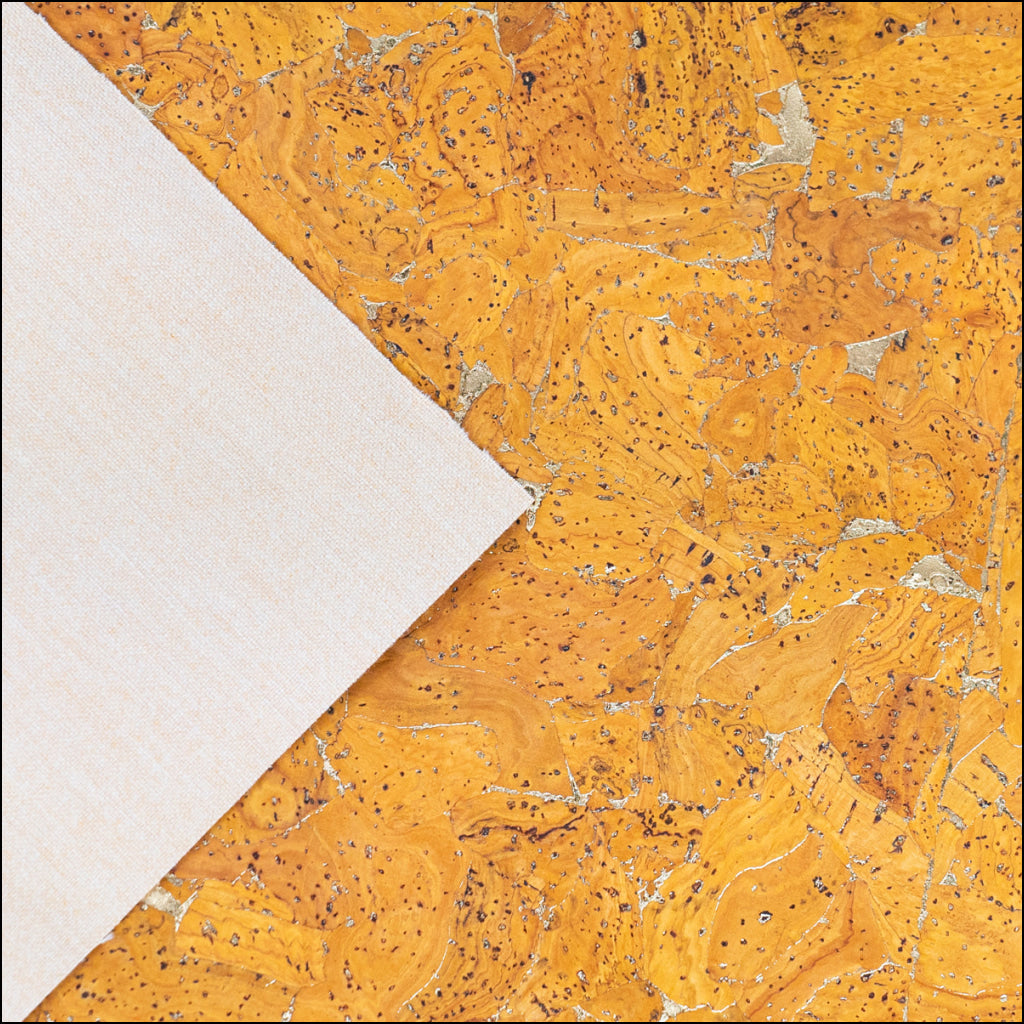 Golden Yellow Cork Fabric with Metallic Details - 0.9mm Thickness COF-581 cork fabric