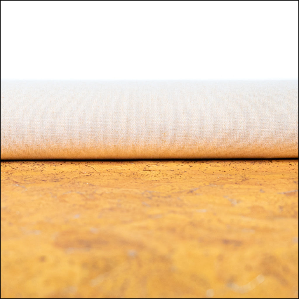 Cork fabric features a fabric support backing composed of polyester, cotton, and polyurethane, providing it with a luxurious and leather-like feel. Its soft, smooth, and pliable texture makes it a favored choice for various applications, including handcrafted bags, wallets, clothing embellishments, craft projects, applique, embroidery, shoes, and upholstery.