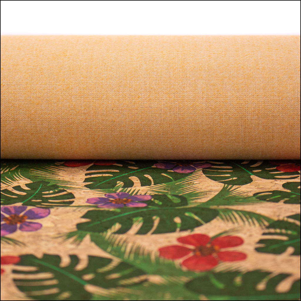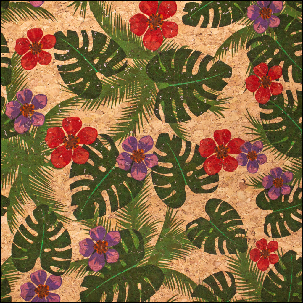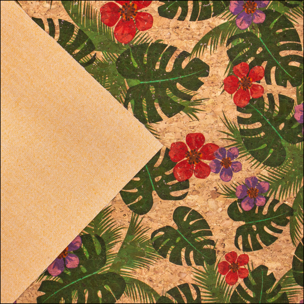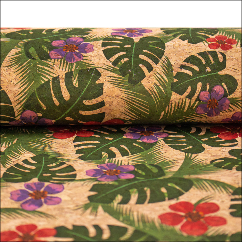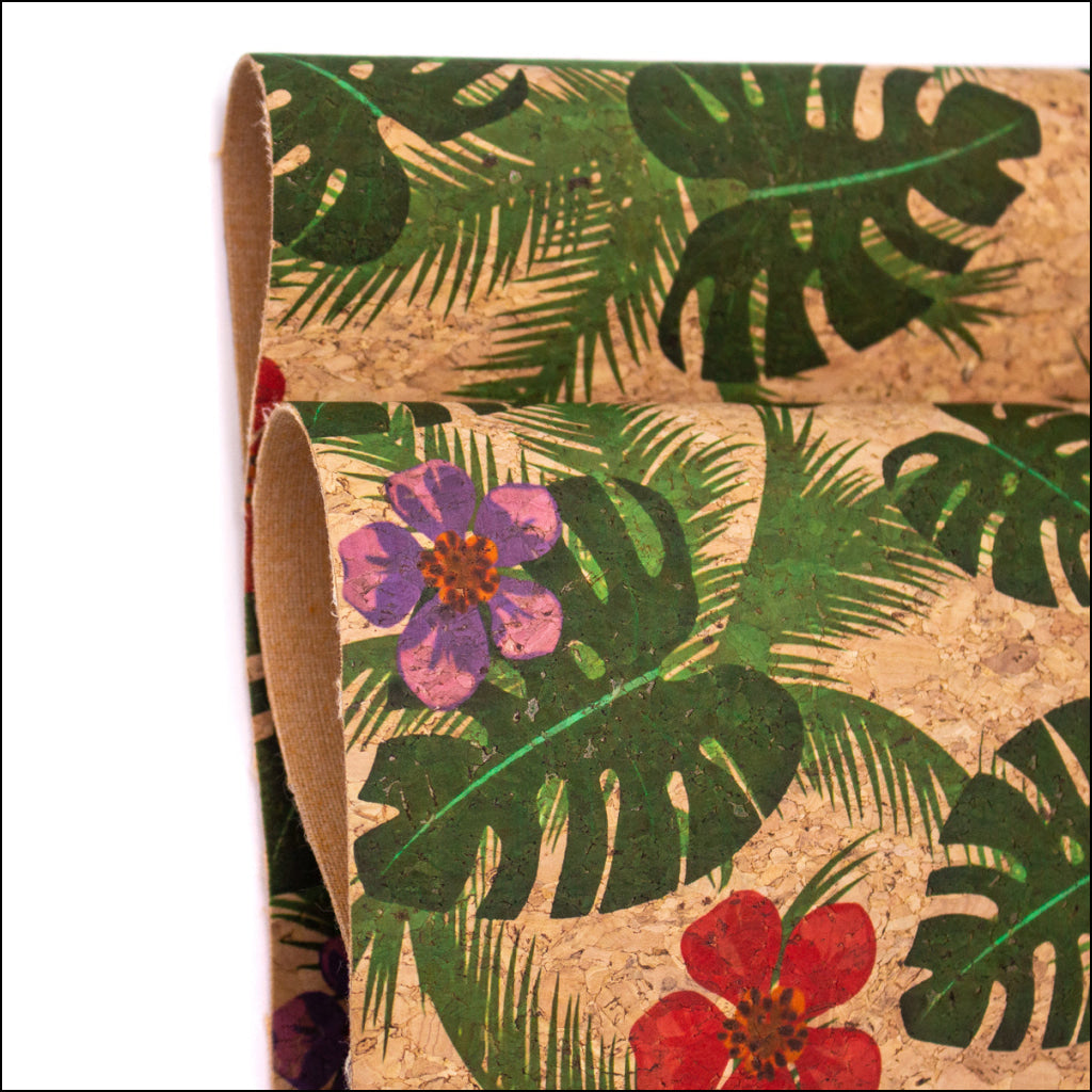 Green Palm Leaves and Flowers Cork Fabric COF-394