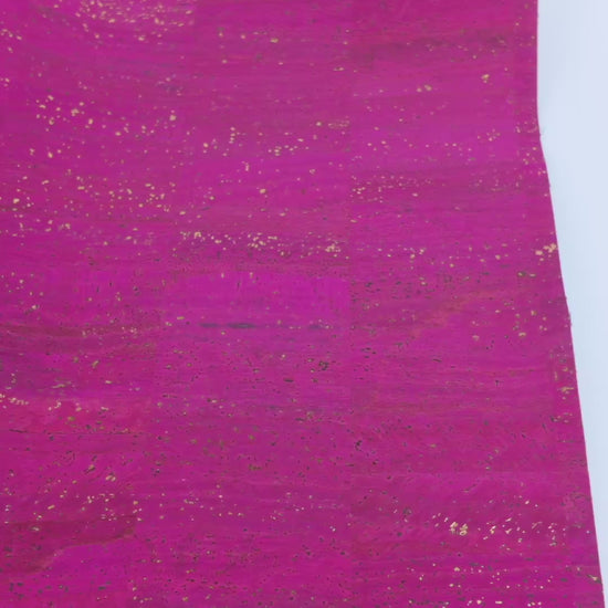 Turn heads with this bold hot pink cork fabric, enhanced with shimmering gold flecks for a glamorous finish. Backed with a black textile layer and approx. 0.91 mm thick, it’s soft, flexible, and easy to sew.