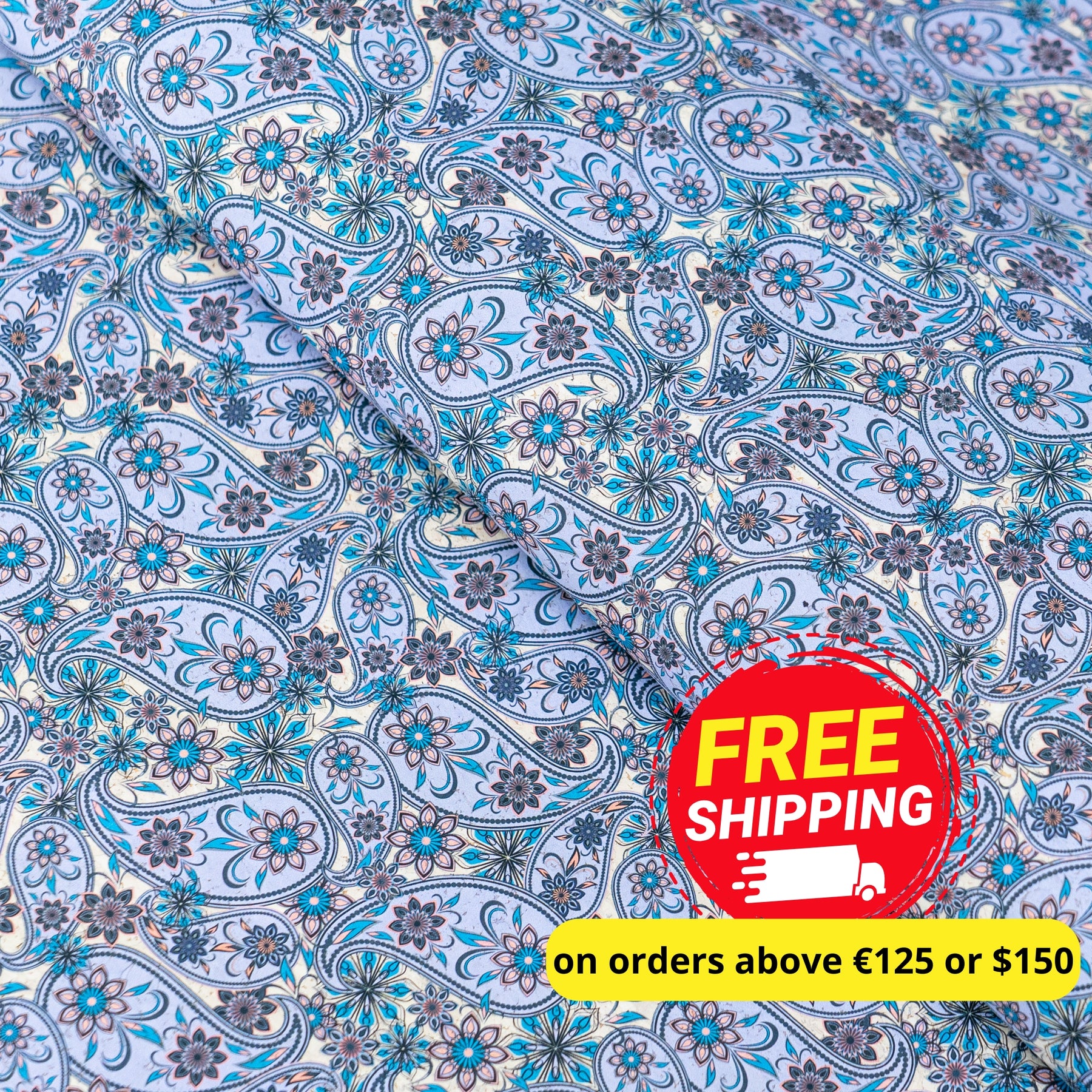 Floral Paisley Printed Cork Fabric COF-623 cork fabric
