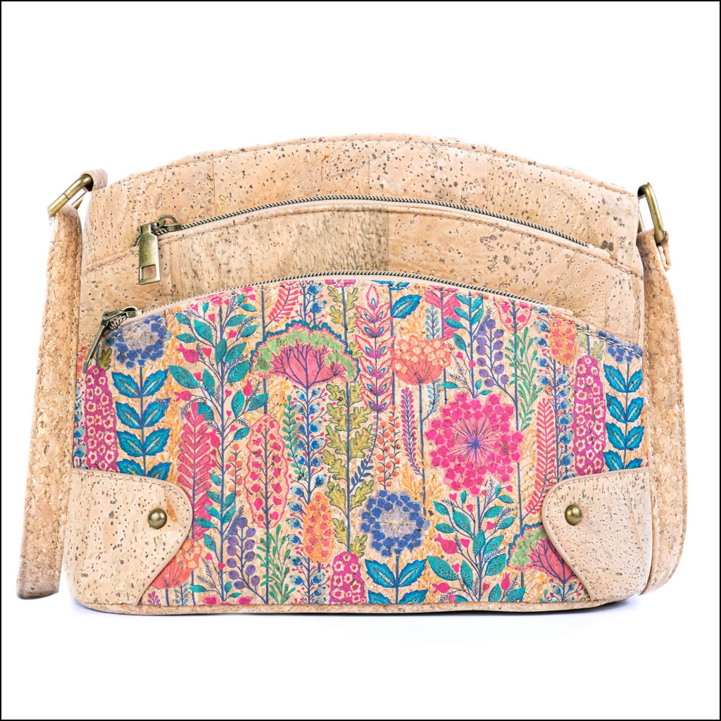 Floral Cork Crossbody Phone Bag for Women – Double Zipper BAGD-605