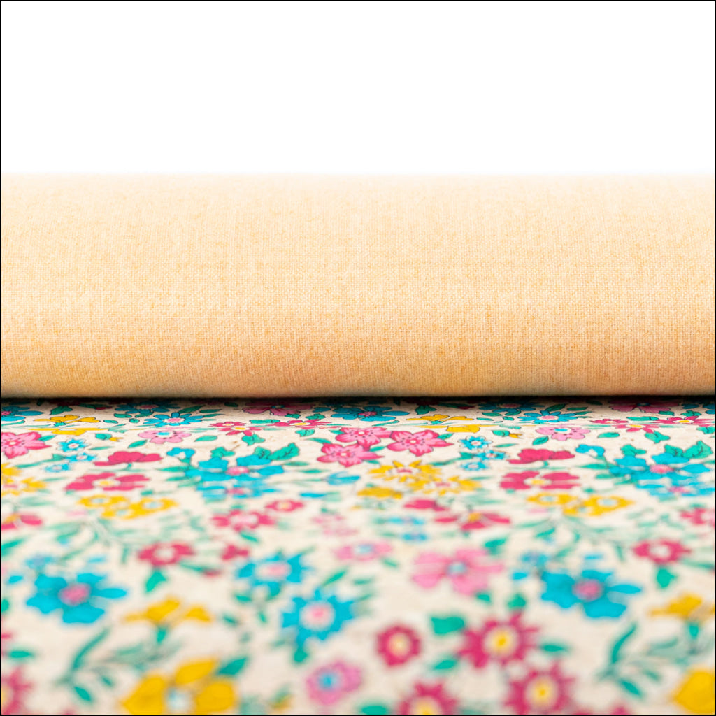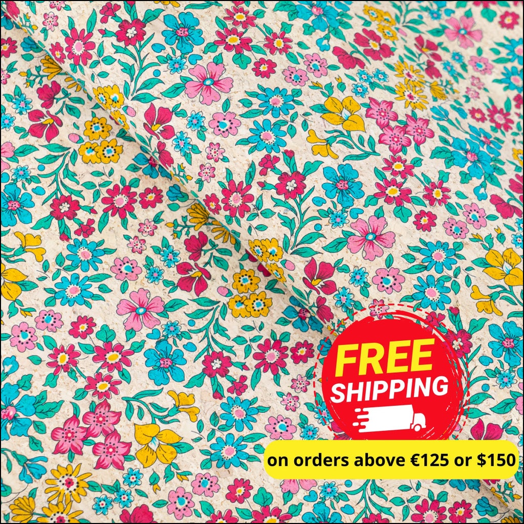Printed Cork Fabric with Bright Floral Vine Pattern COF-563