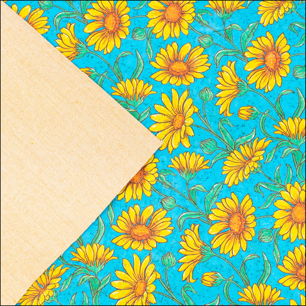 Printed Cork Fabric with Bright Yellow Sunflower Design COF-565