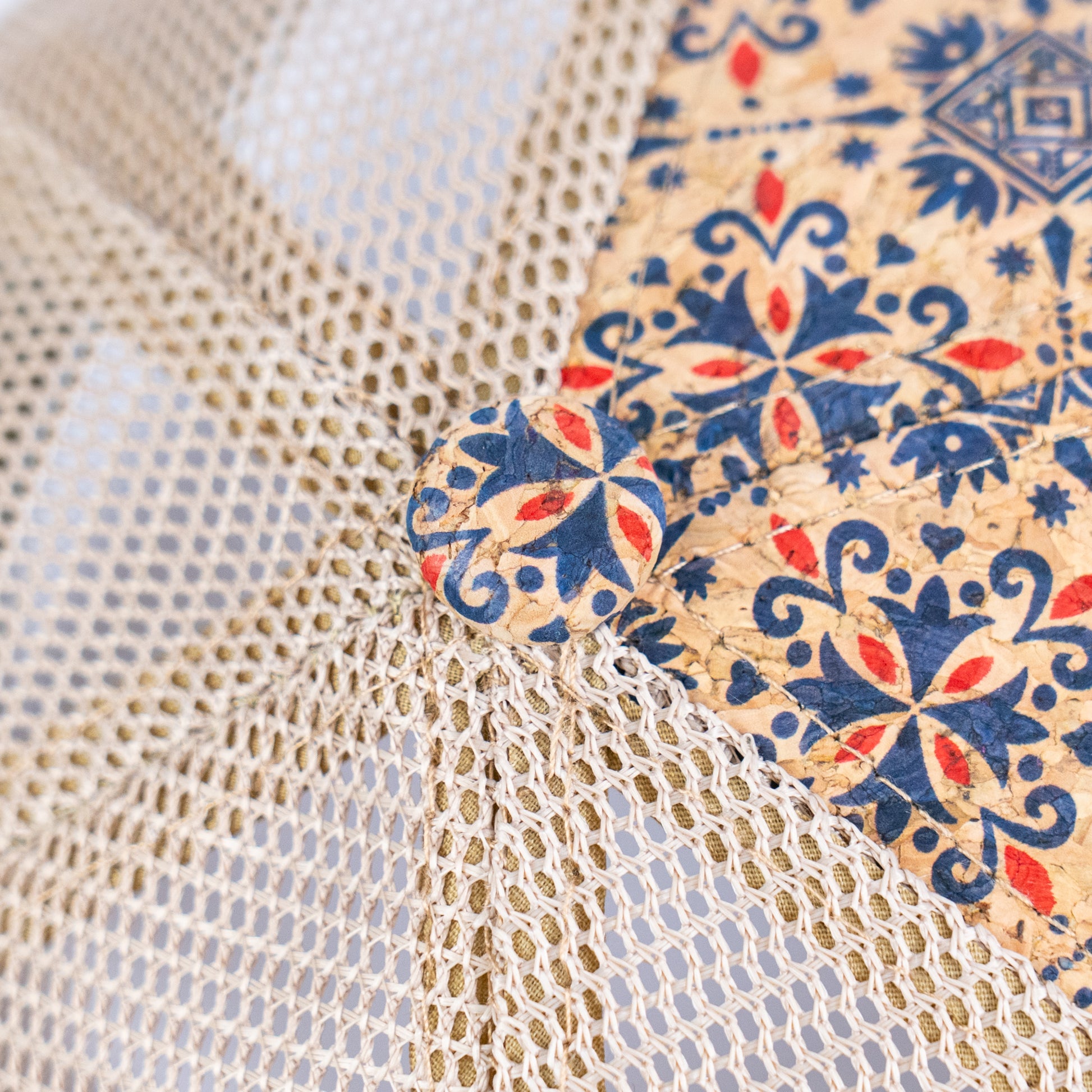 This stylish cap features a unique blend of sustainable cork fabric and breathable mesh, making it both eco-friendly and fashionable. The front panel and visor are crafted from natural cork, while the back mesh ensures ventilation and comfort, perfect for outdoor activities. The cap comes with an adjustable snapback closure for a customized fit, offering versatility for various head sizes. Its vibrant printed designs reflect a fusion of modern aesthetics and traditional Portuguese tiles, adding a touch of culture to your wardrobe. Whether you're going for a casual look or want to make a statement, this cork cap is a sustainable and eye-catching accessory.