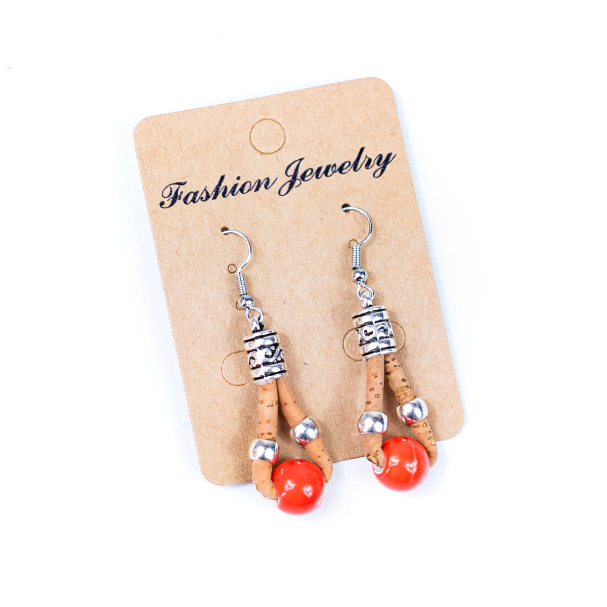 Natural cork and colorful ceramic beads handmade women's earrings-ER-150-MIX-5