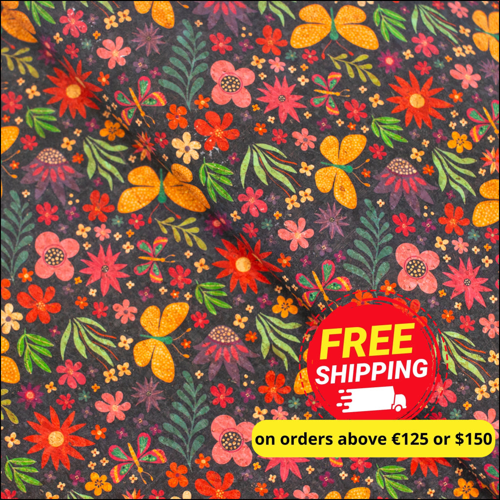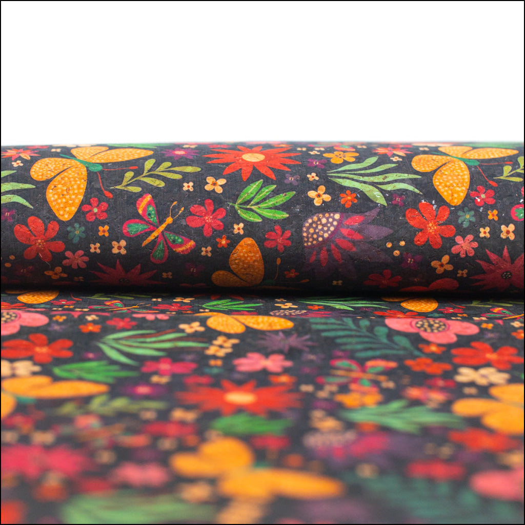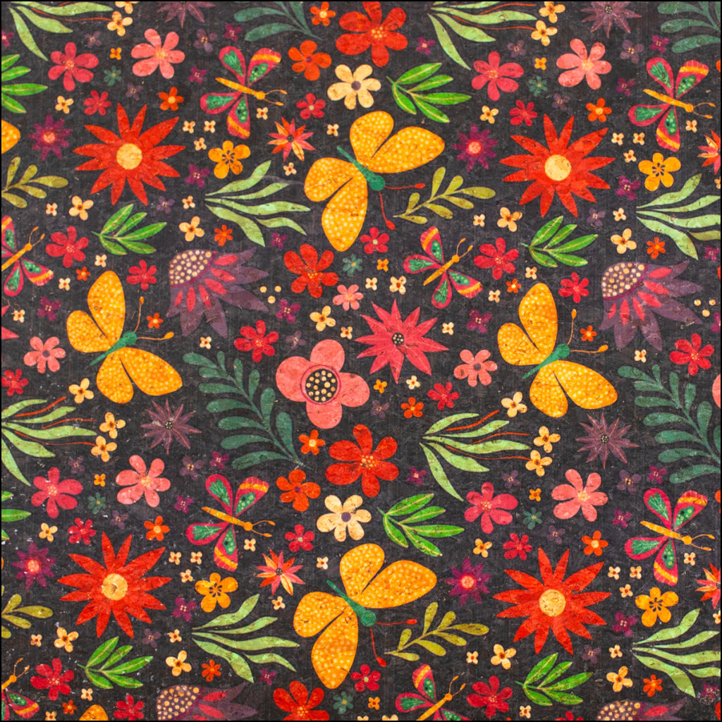 Natural Cork Fabric with Black Base Pattern Featuring Butter COF-480