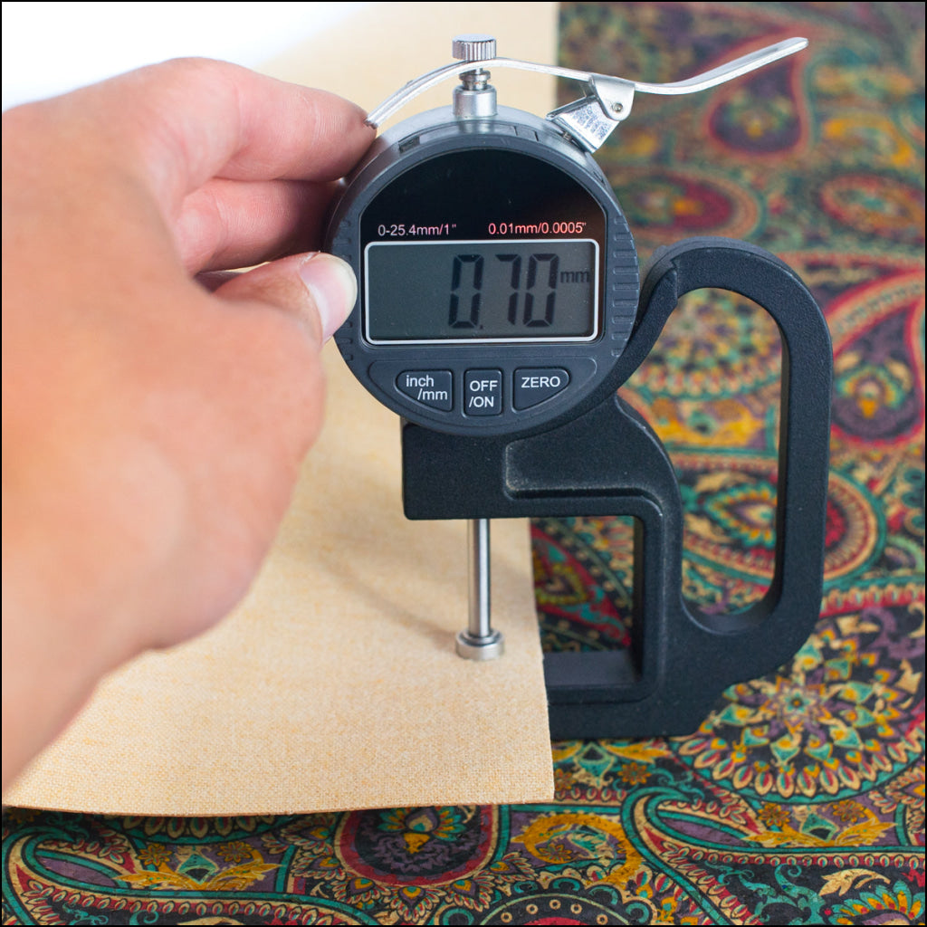 Cork fabric features a fabric support backing composed of polyester, cotton, and polyurethane, providing it with a luxurious and leather-like feel. Its soft, smooth, and pliable texture makes it a favored choice for various applications, including handcrafted bags, wallets, clothing embellishments, craft projects, applique, embroidery, shoes, and upholstery.