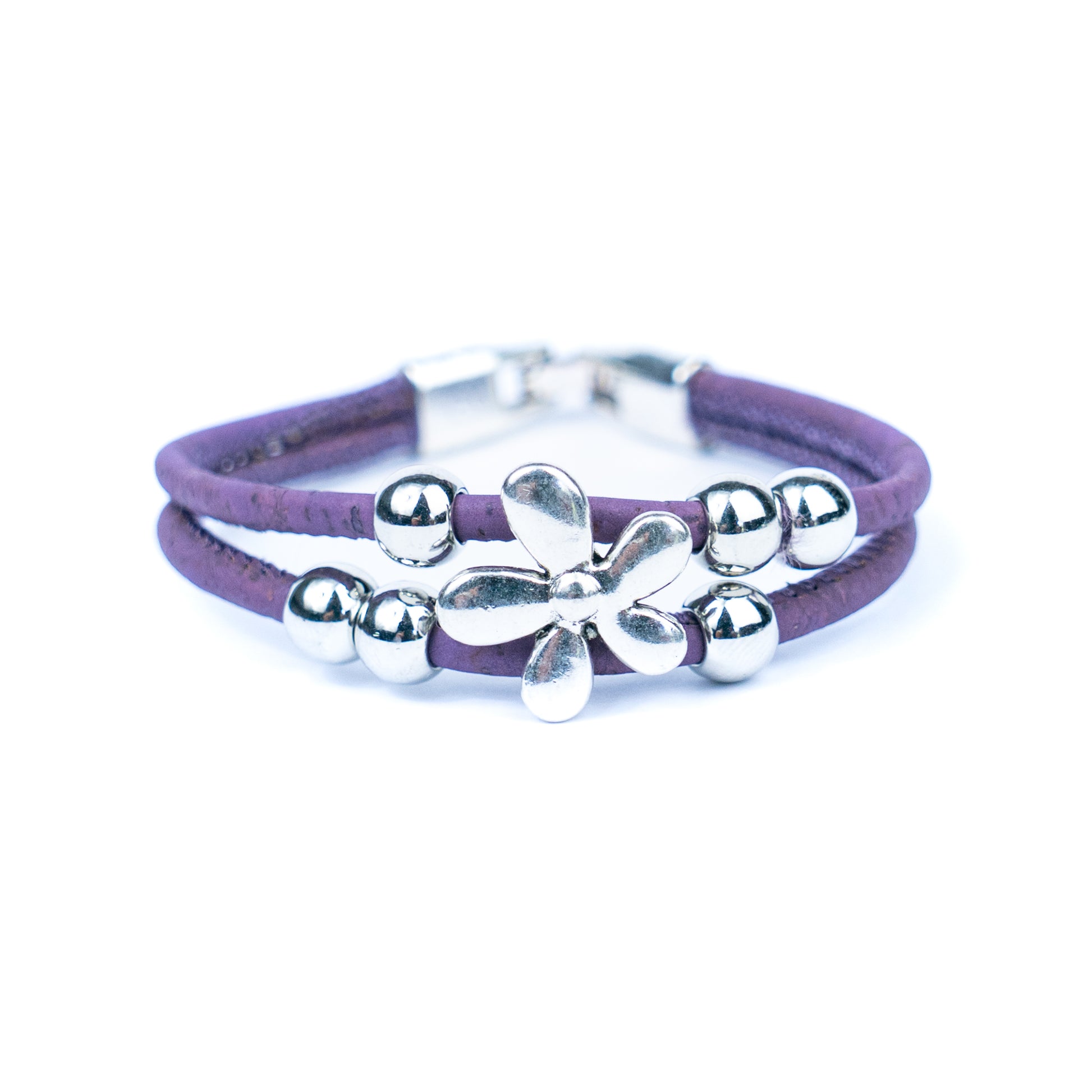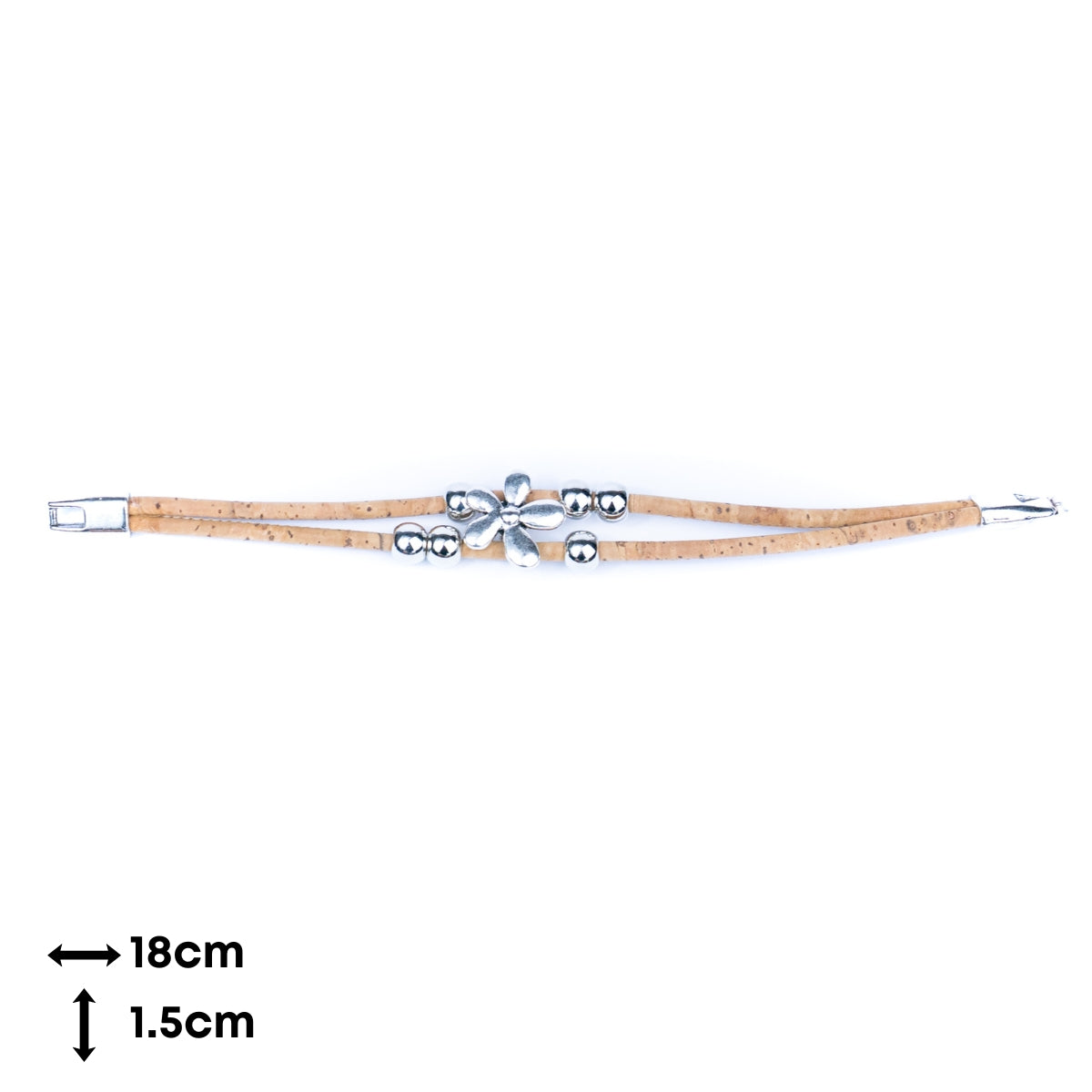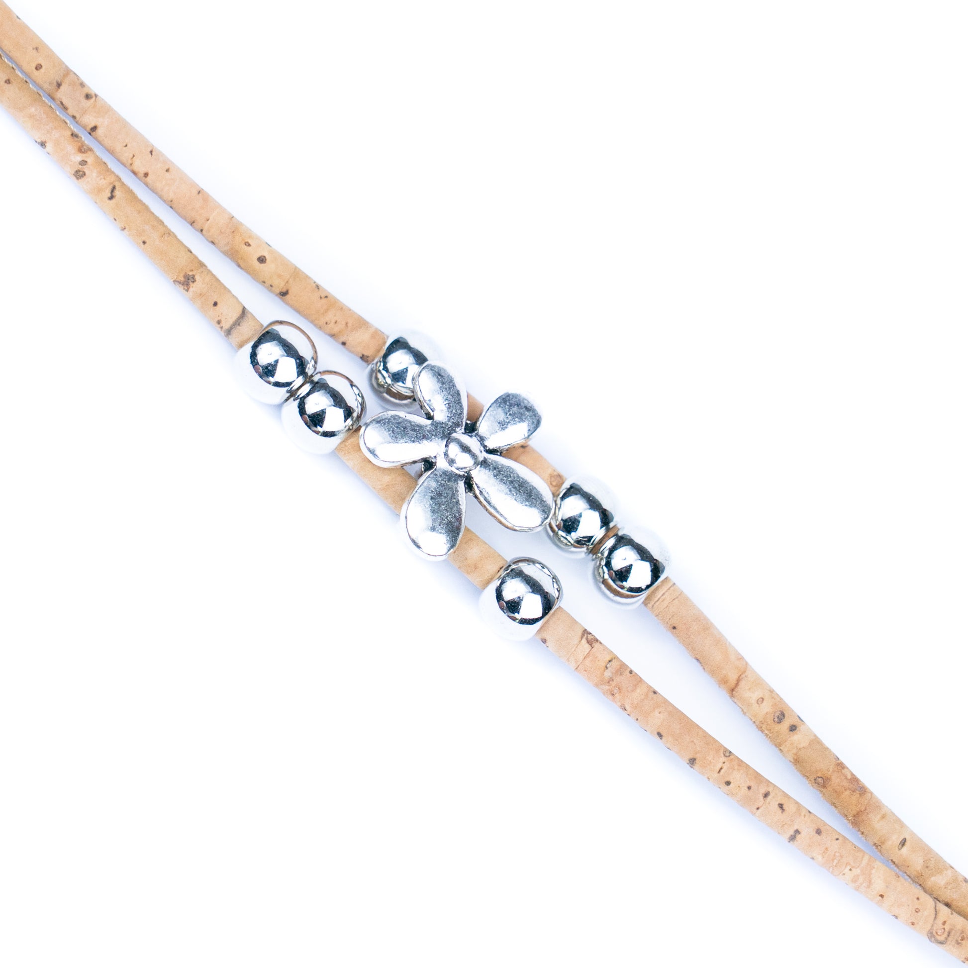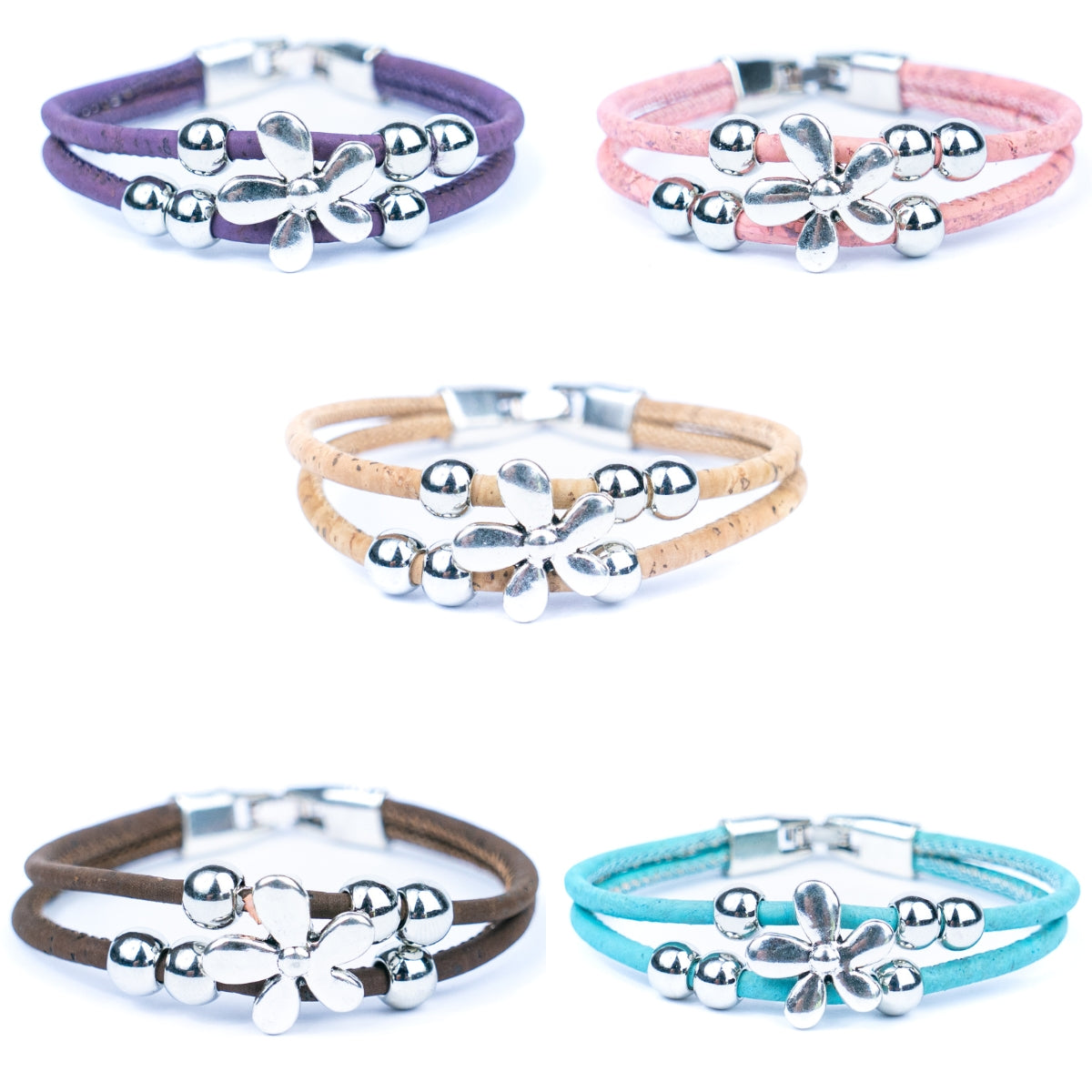Natural cork cord Handmade Cork Bracelet with Alloy Flowers BR-423-MIX-5