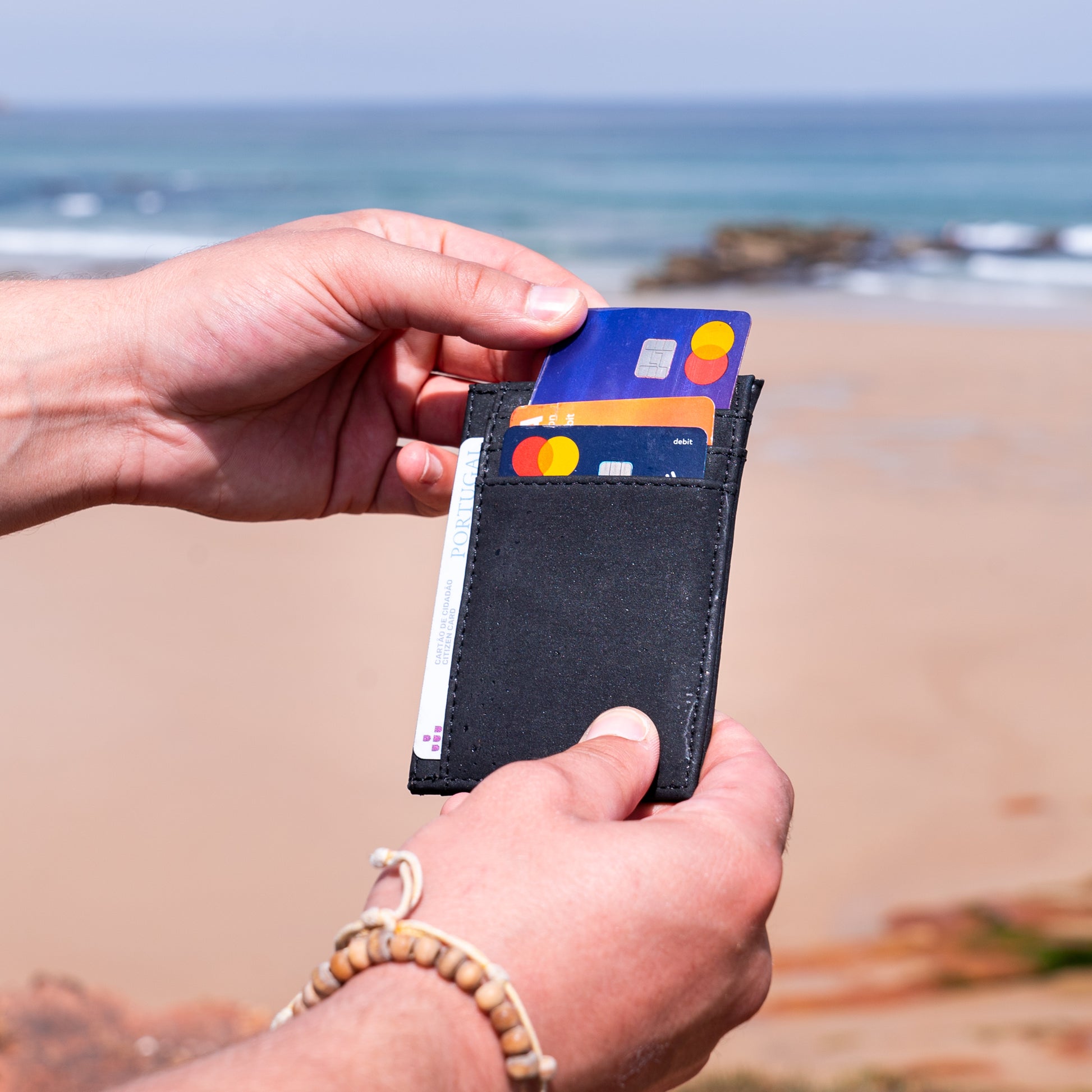 Men's Cork Card Wallet, crafted from all-natural cork material and available in three stylish colors: black, brown, and natural cork. With the capacity to hold up to 6 cards and a transparent card slot for your ID, this wallet is slim and compact, making it easy to carry around wherever you go. But that's not all. Each wallet comes equipped with an RFID shield to protect you from potential threats to your personal information. Our wallet is designed to maximize space in a small area, allowing you to carry all of your cards nearly undetected. Made with quality and durability in mind, this cork card wallet is perfect for the man who values both style and practicality. So upgrade your wallet game and protect your identity with our Men's RFID-blocking Cork Card Wallet. The product dimensions are: Length of 7.5 cm (2.95 inches), and Width of 11 cm (4.33 inches).