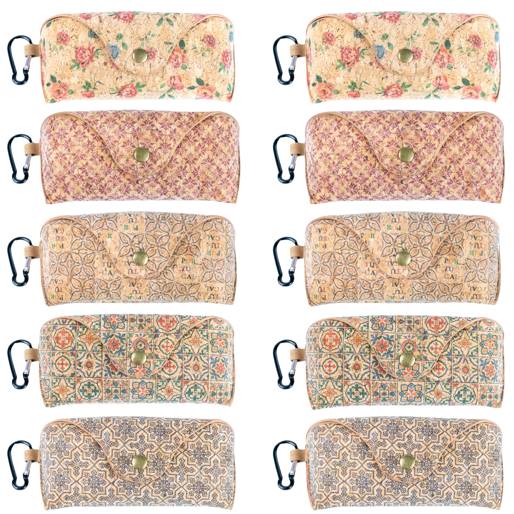 This wholesale set includes 10 pieces of beautifully printed cork glasses cases, perfect for retail shops, gift stores, or bulk buyers. Each case is made from sustainable cork with colorful printed patterns, combining eco-friendliness, durability, and style.