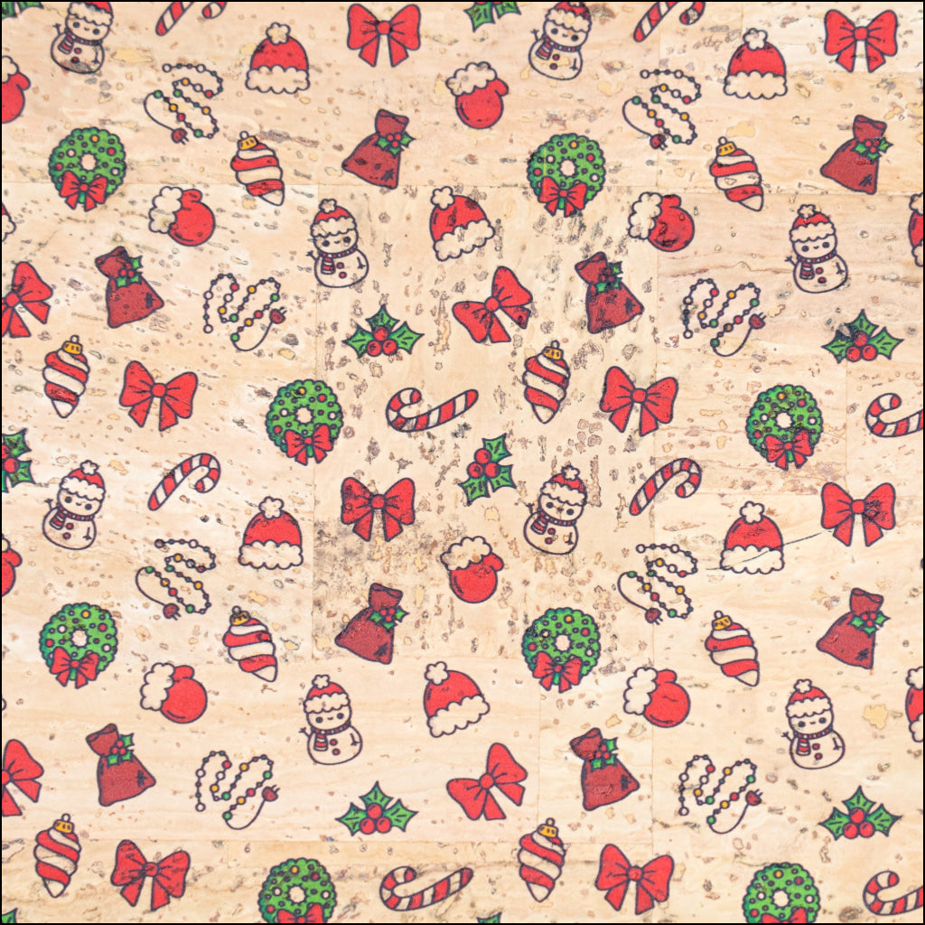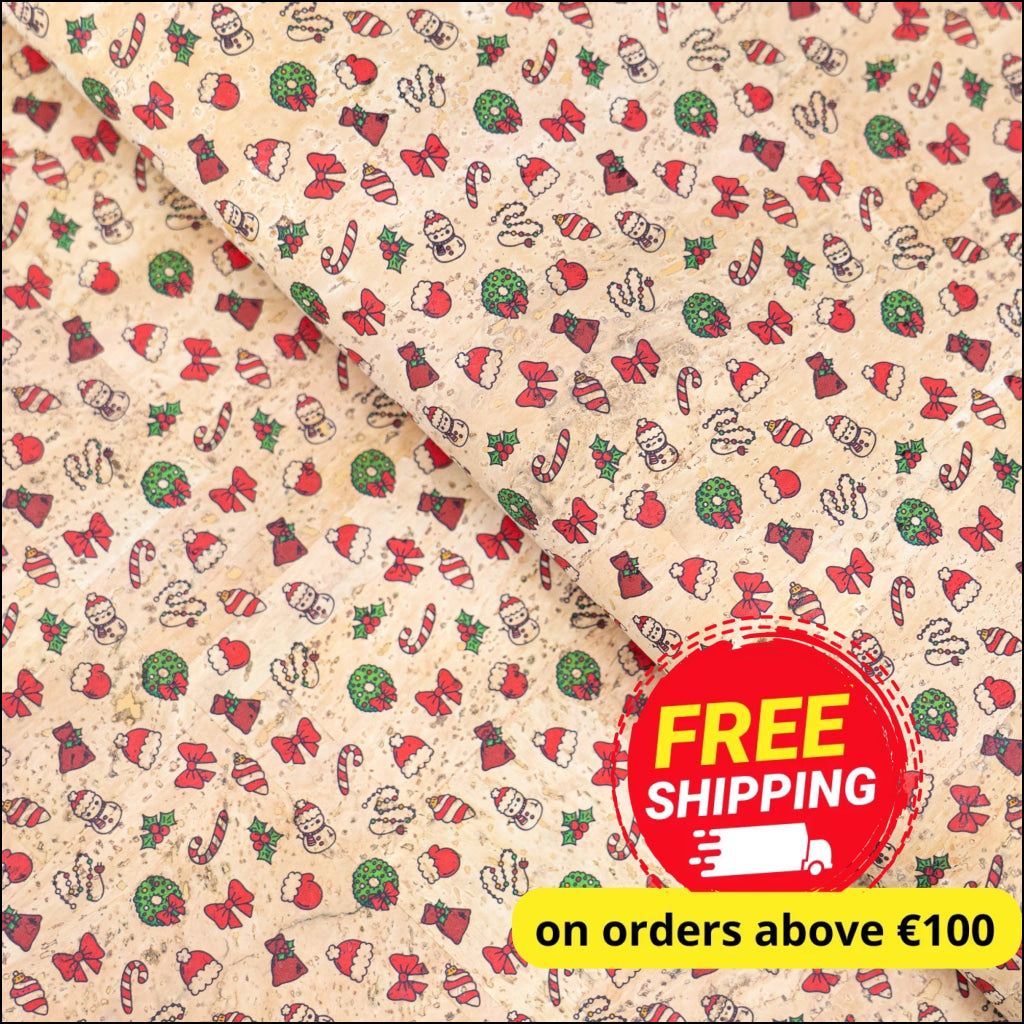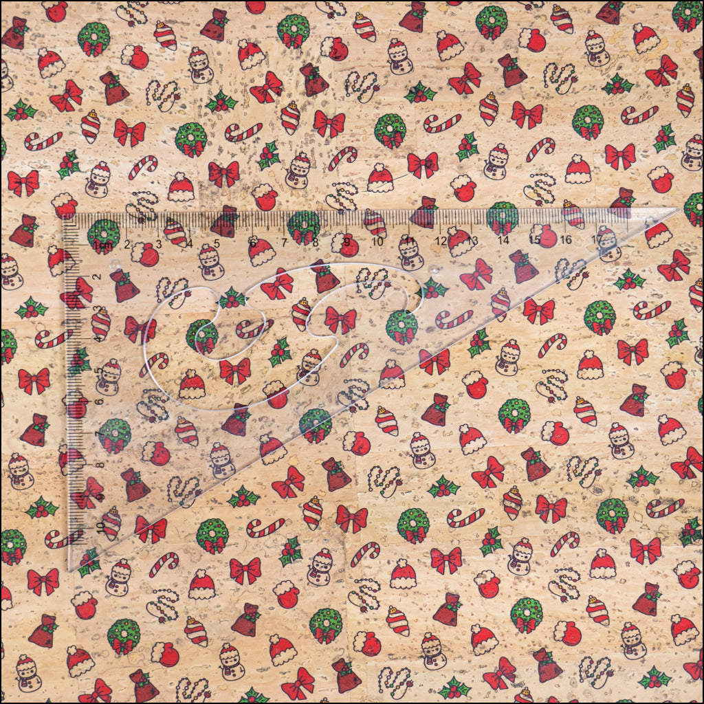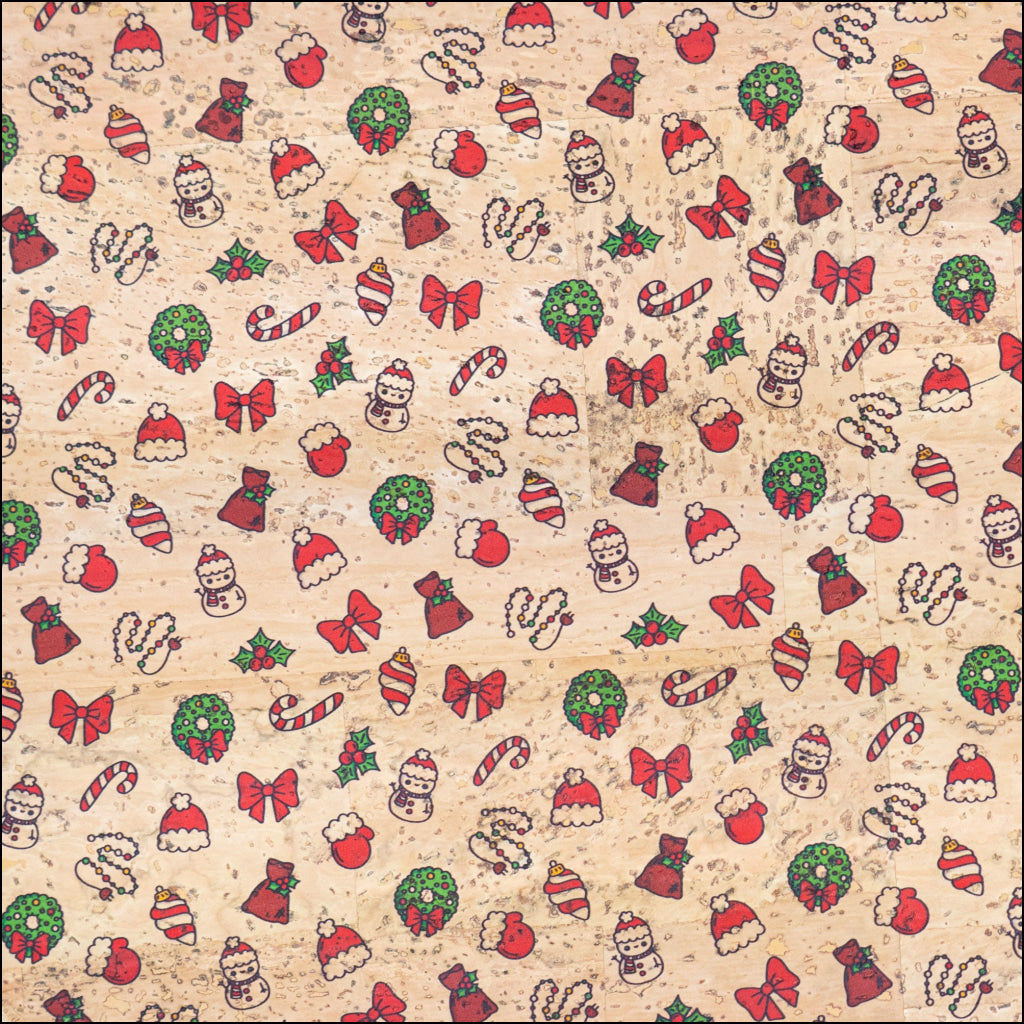 Holiday Special - Mini Christmas Icons Cork Fabric COF-08 1/2M (138*50 cm / 54*19 inches) cork fabric