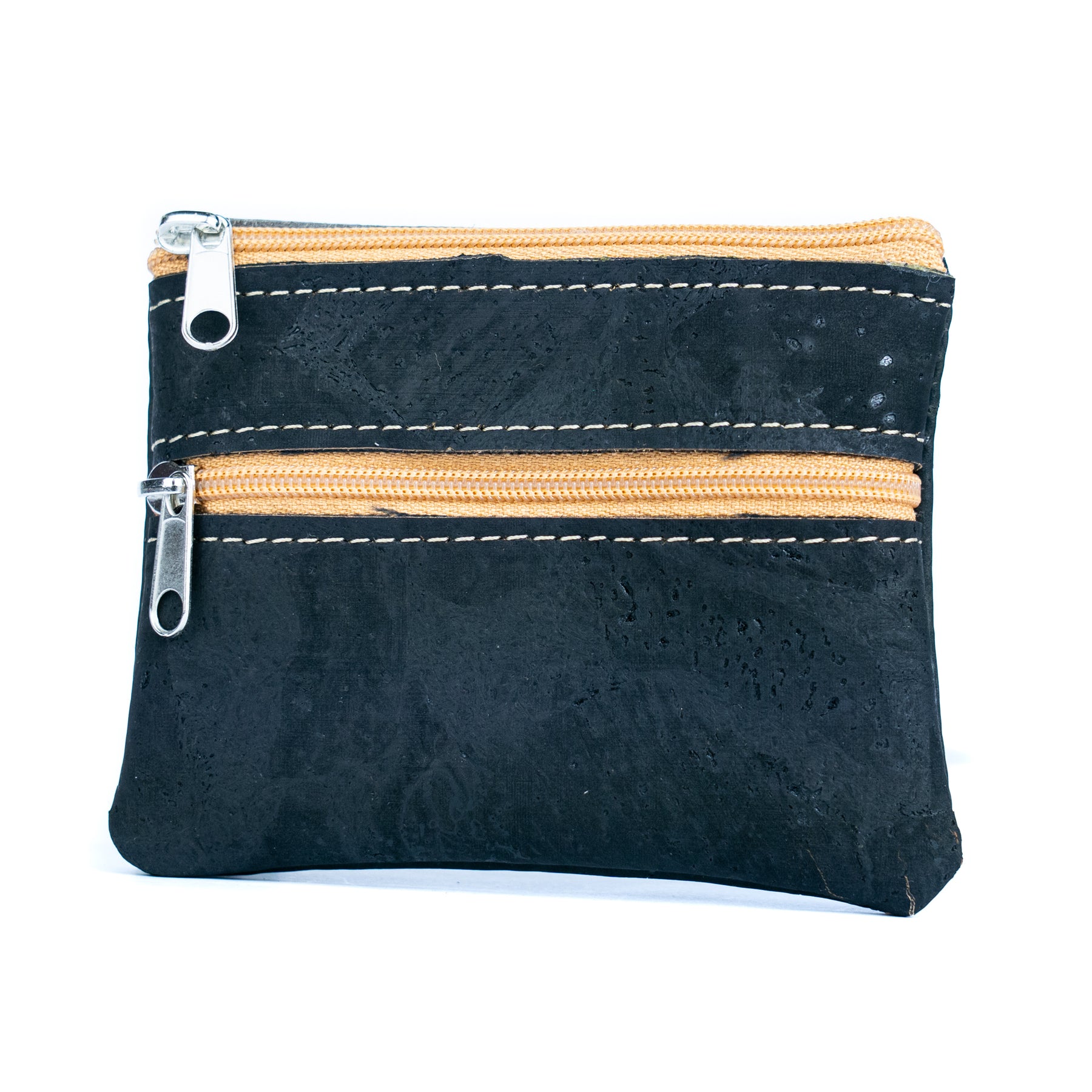 Keep your coins, keys, or small essentials secure with this eco-friendly coin purse made from sustainable natural cork. this mini wallet features a sleek, durable design with two zippered compartments for easy organization.