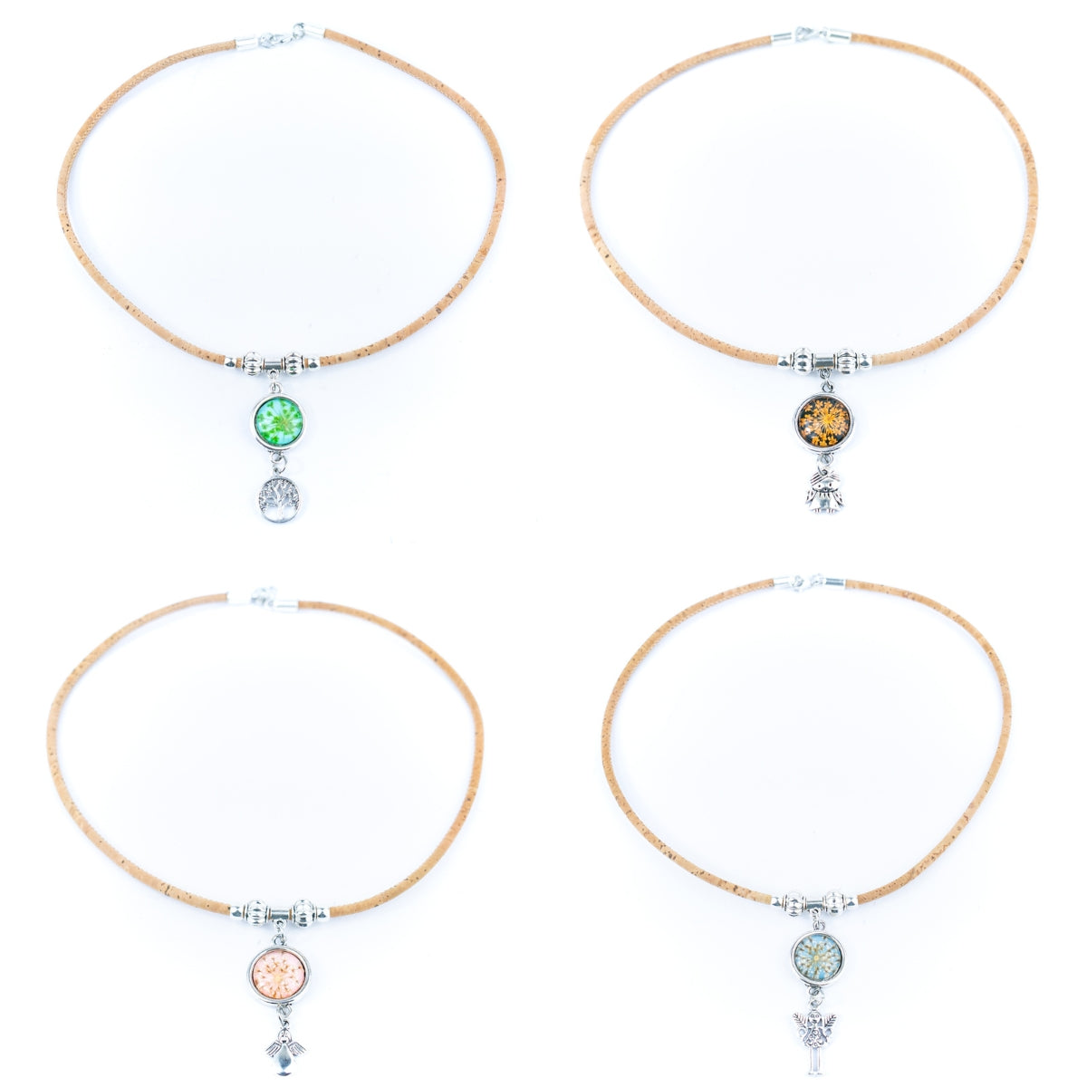 Handmade Cork Necklace - Dried Flower Collection (Four Colors) (Set of 4)