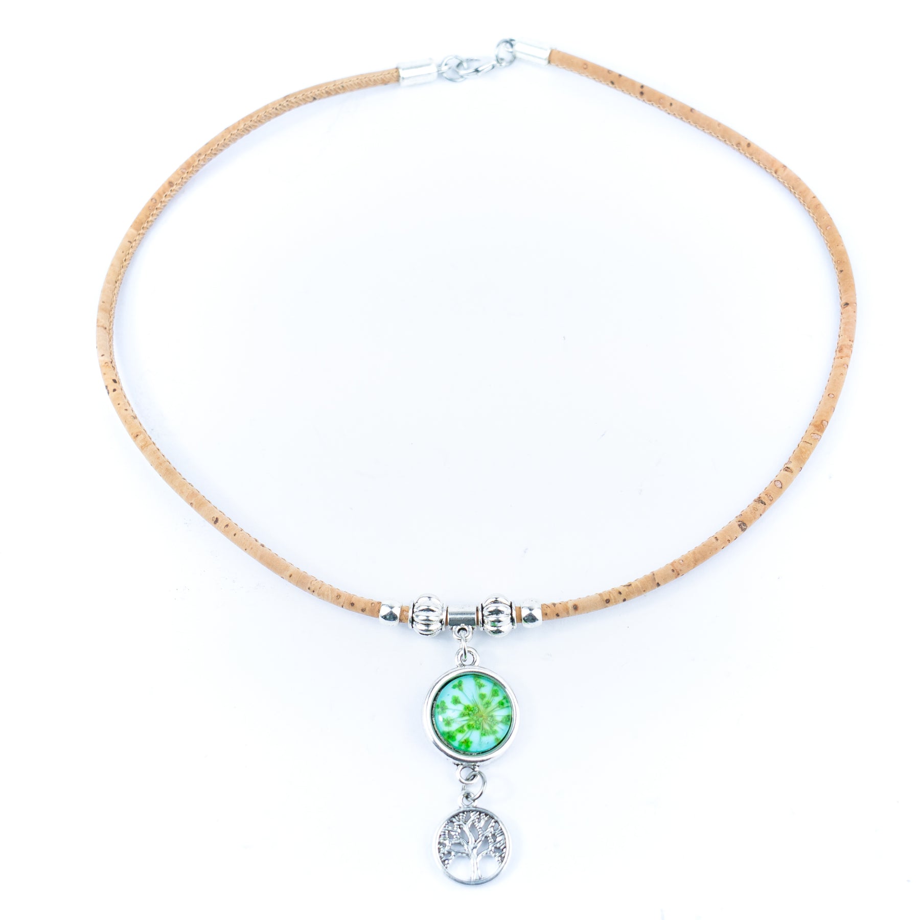 Handcrafted from 5mm natural cork cord, this necklace is lightweight and comfortable, showcasing the beauty of nature.