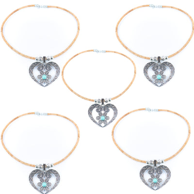 Natural cork cord and Heart of Viana pendant handmade women's fashion necklace N-011-5